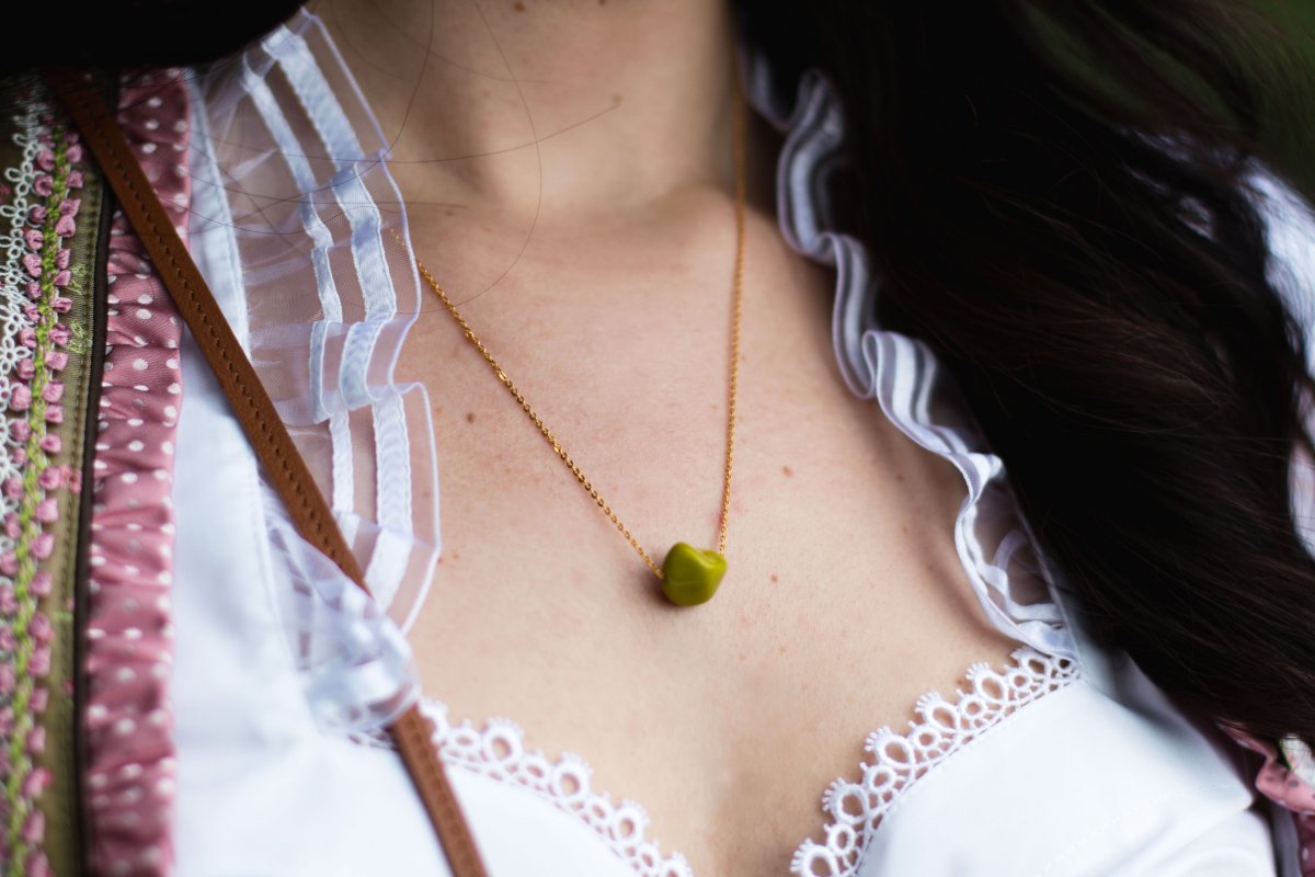Im Dirndl gekleidet, stand ich vor dem Schuhregal auf der Suche nach dem farblich passenden Paar Schuhen. Die Clarks Pumps, die ich euch im Frühjahr schon gezeigt habe, passen einfach super zum Dirndl Outfit dazu. Um den Hals schlinge ich mir die süße Halskette von LOVJOU und als Tasche wähle ich ein Topshop mit rosa Details aus. Und fertig ist mein Wiesn Look.