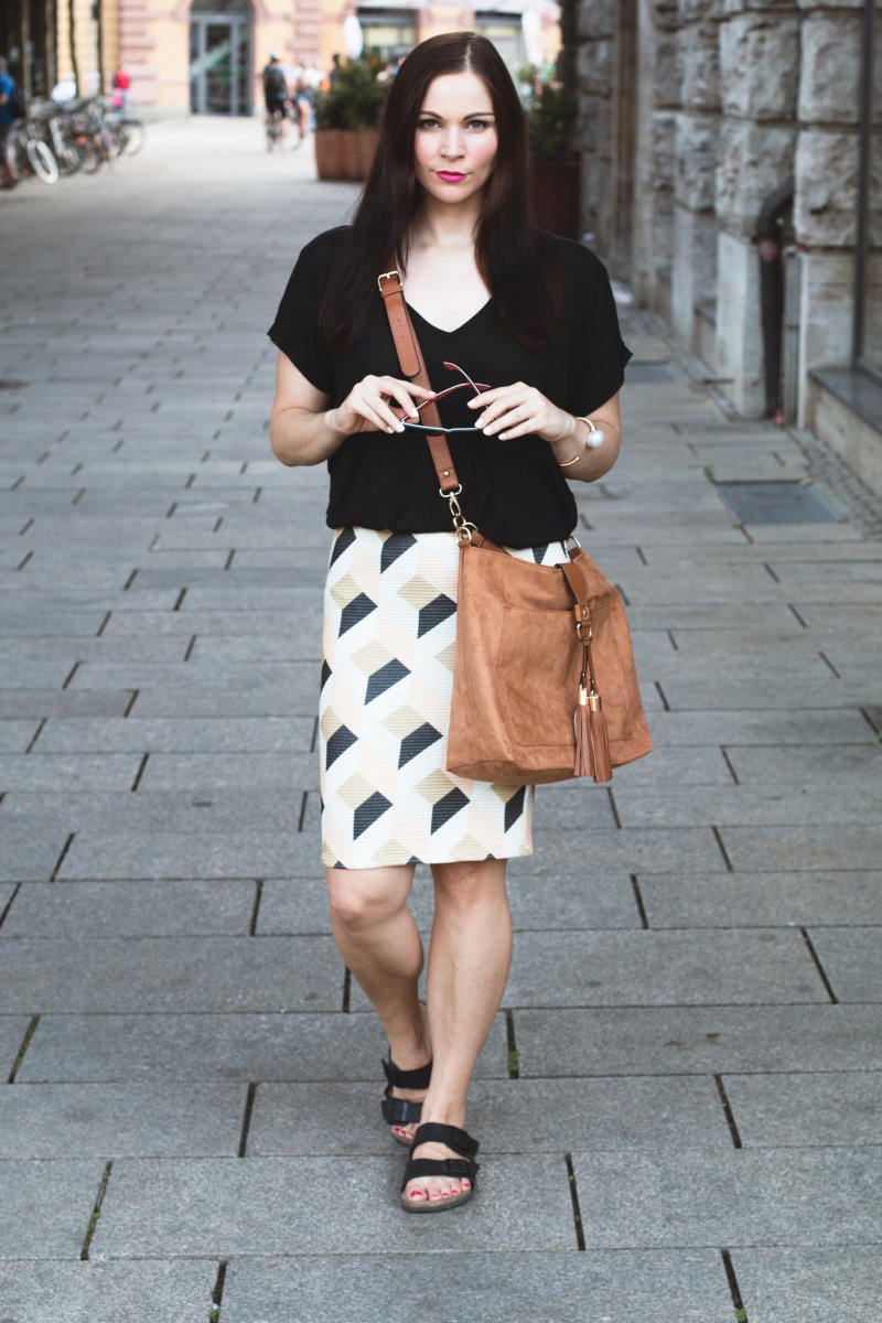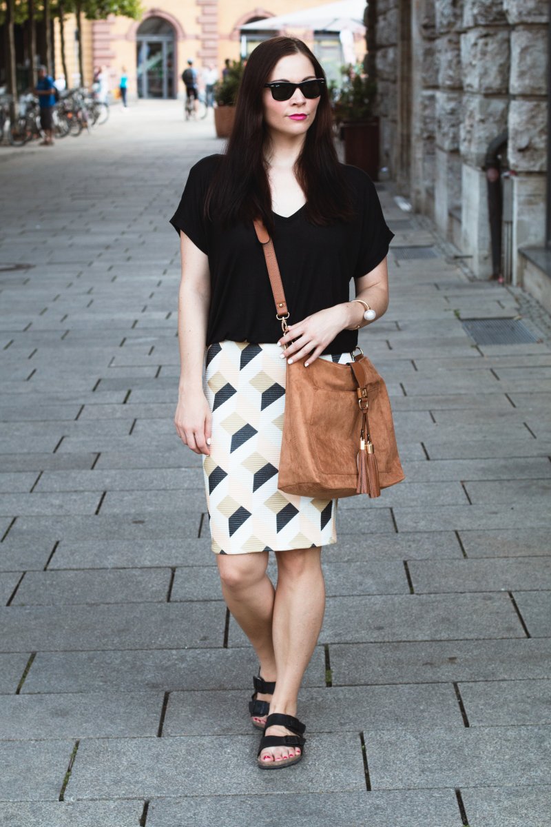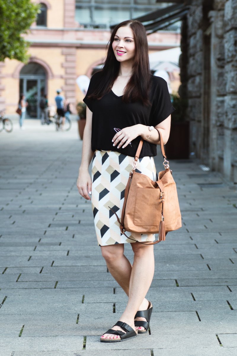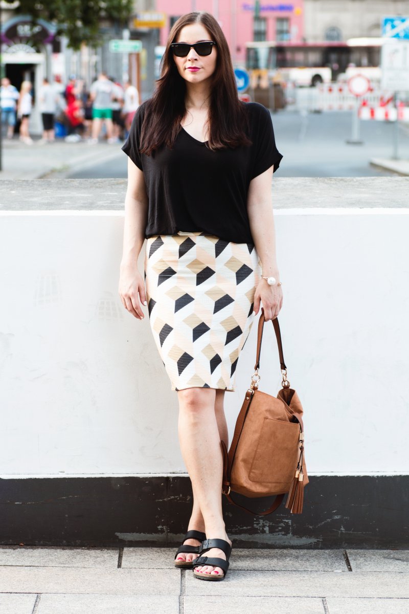 Dennoch ist mir an heißen Tagen auch nach Eleganz zumute. Für die nötige Chicness sorgt der gemusterte Bleistiftrock von River Island. Als ich den Rock gesehen habe, war ich sofort hin und weg. Das Muster des Rocks ist aber auch wie gemacht für den Sommer. Oder was sagt ihr?