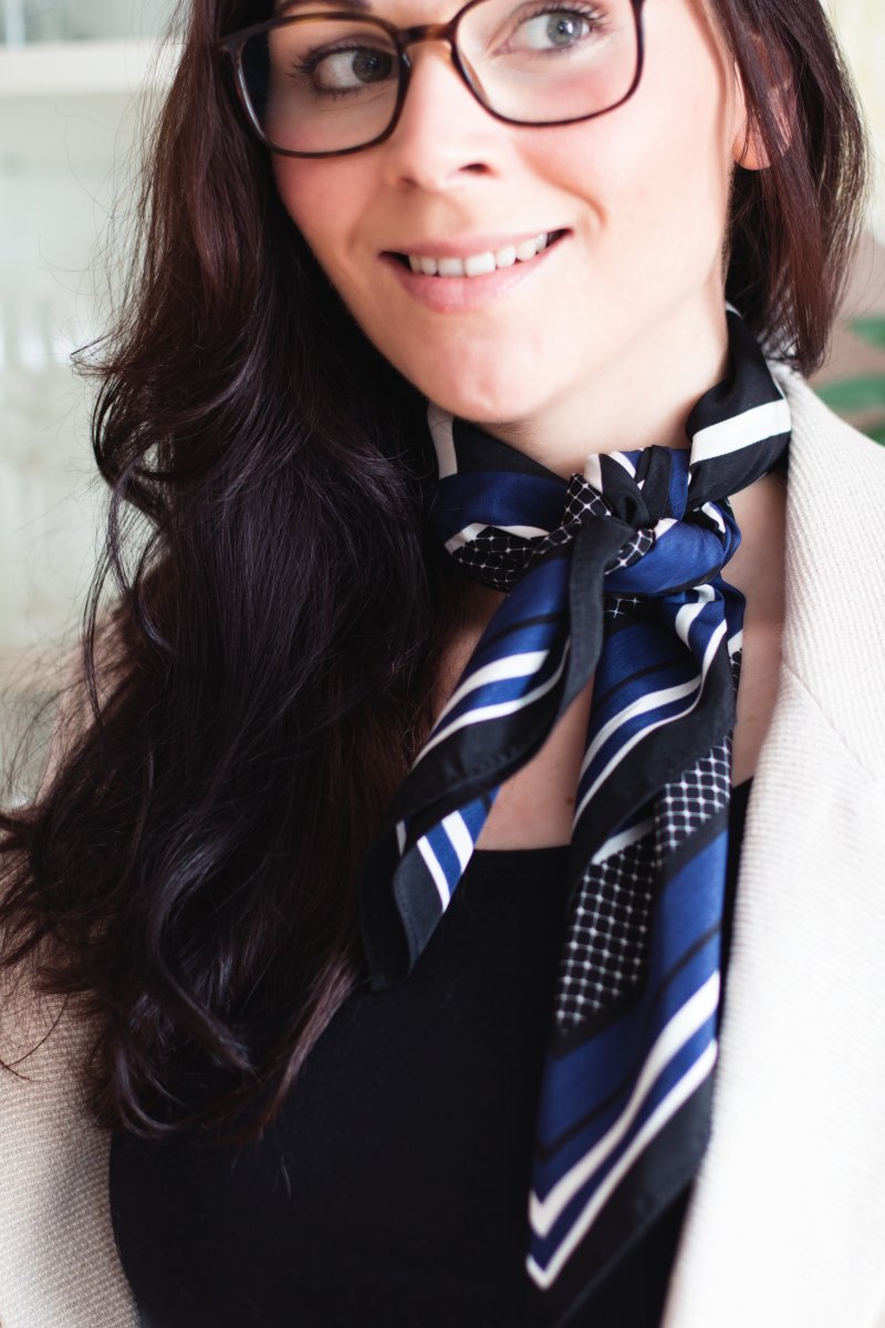 Ich muss aber zu meiner Schande gestehen, dass ich selbst überhaupt kein großer Halstuchfan bin. Trage privat lieber gleich die großen XXL Woll-Schals die ich mir kuschelig um den Hals schlinge.