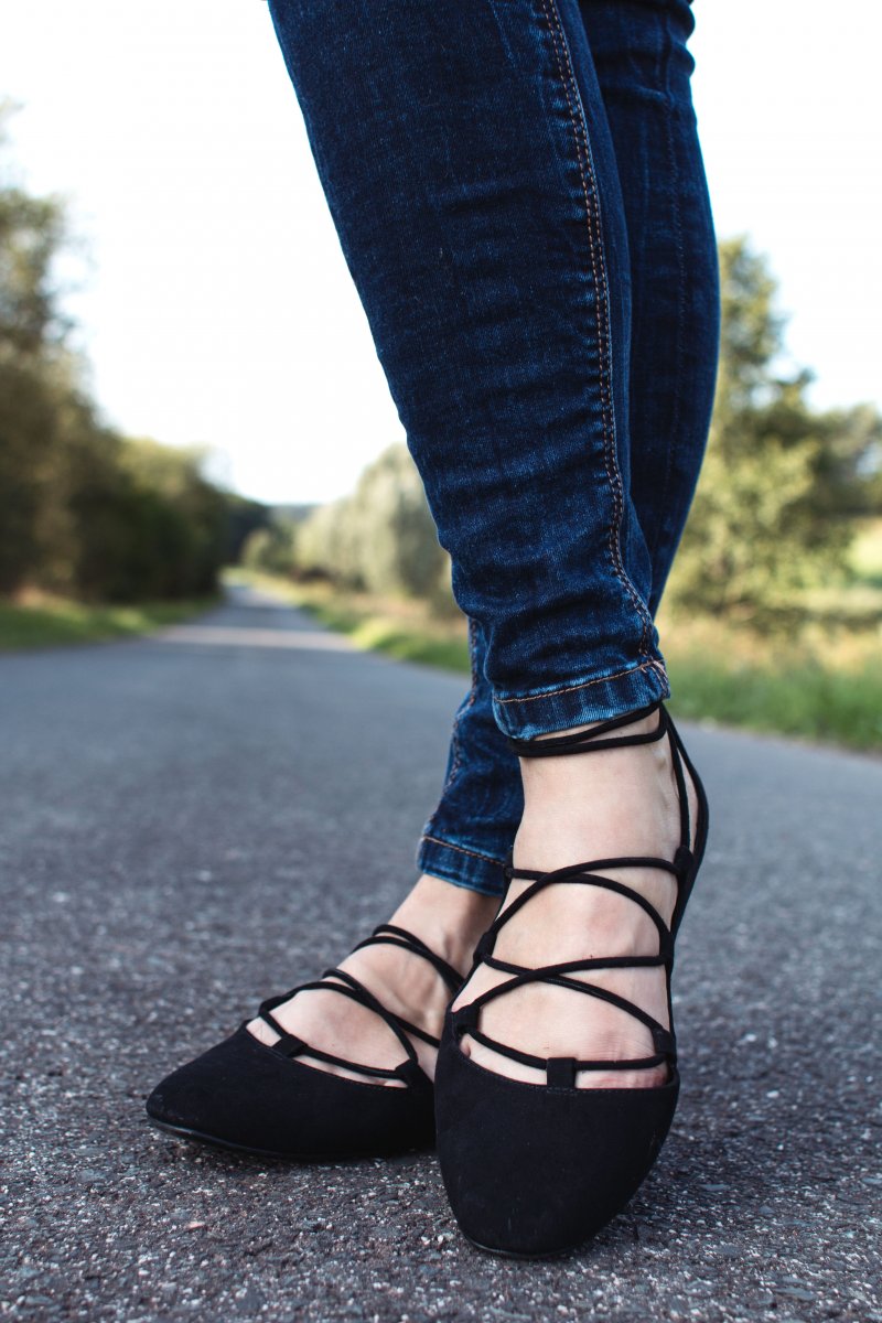 Lace Up Ballerinas Zara || hier findet ihr ähnliche schwarze Ballerinas