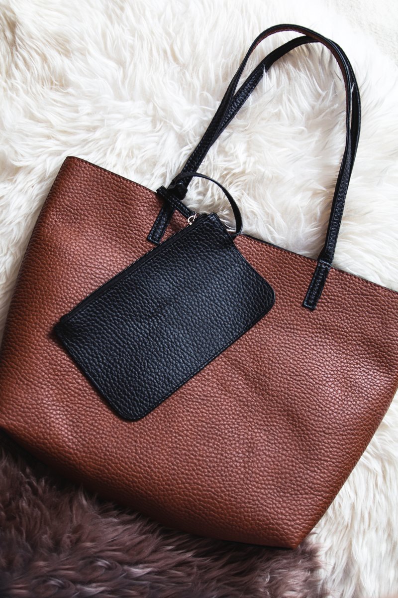 - 1 x Wendeshopper von New Look. Den ihr je nach Lust und Laune auf der braunen oder schwarzen Seite tragen könnt. Dazu gehört auch noch eine kleinere schwarze Tasche.