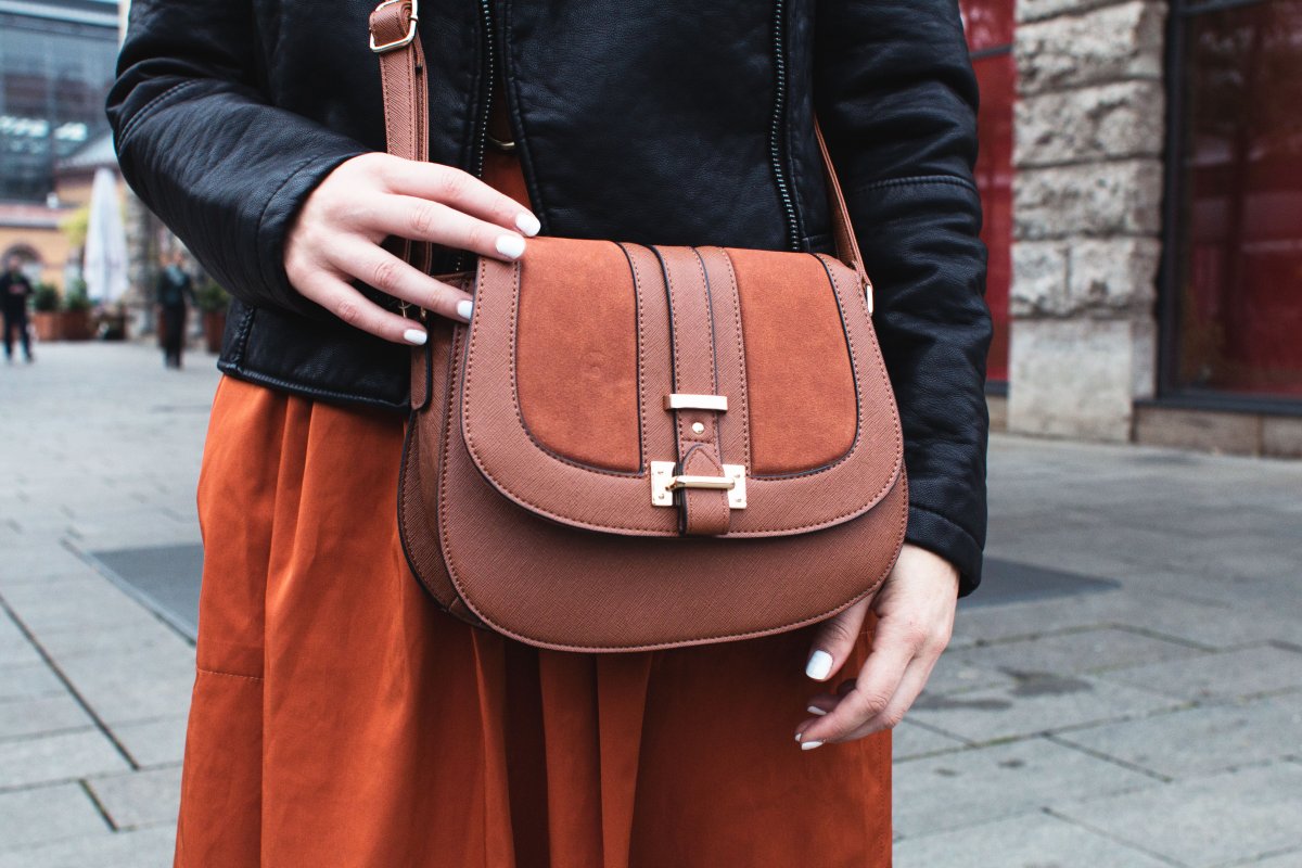 Um den Look noch etwas aufzupeppen, lege ich mir einen braunen Ledergürtel von H&M um die Taille. Und an die Füße wandern die schwarzen Ankle Boots von Zign. Den letzten Schliff bekommt das Outfit aber durch ein anderes Highlight. Nämlich durch die braune New Look Tasche, die gerade wieder bei Zalando im Shop erhältlich ist. Die Tasche kostet gerade mal 20 Euro und hat dafür eine wirklich sehr gute Qualität. Ein Teil das ihr euch diesen Herbst nicht entgehen lassen solltet. Also schnappt sie euch!