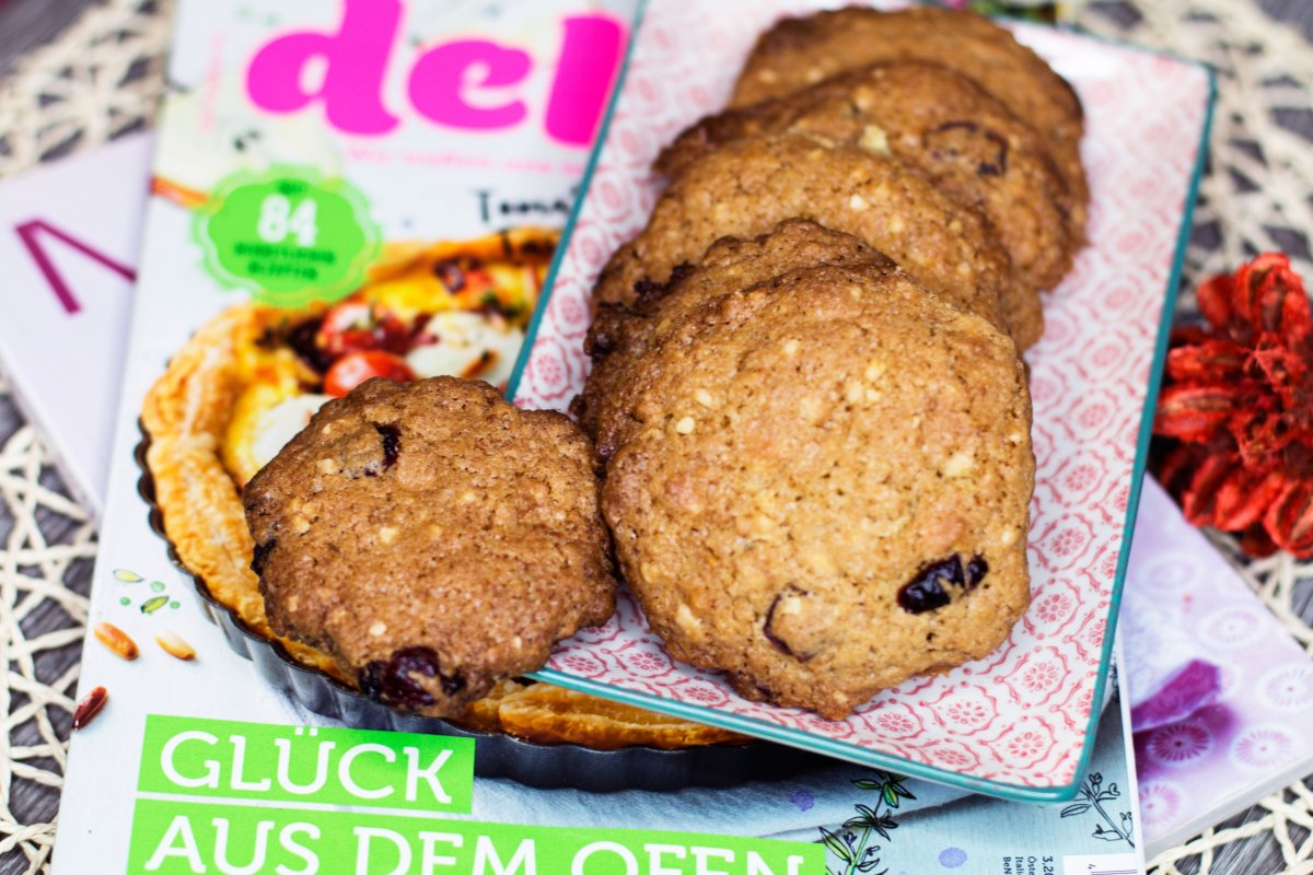 Und fertig sind die weißen Schokoladen Cranberry Cookies. Jetzt müsst ihr sie nur noch schick verpacken und dann könnt ihr auch schon los zur eurer Oma. Ich wünsche euch einen guten Appetit.