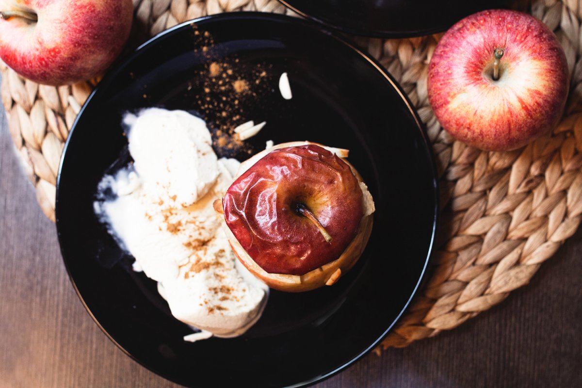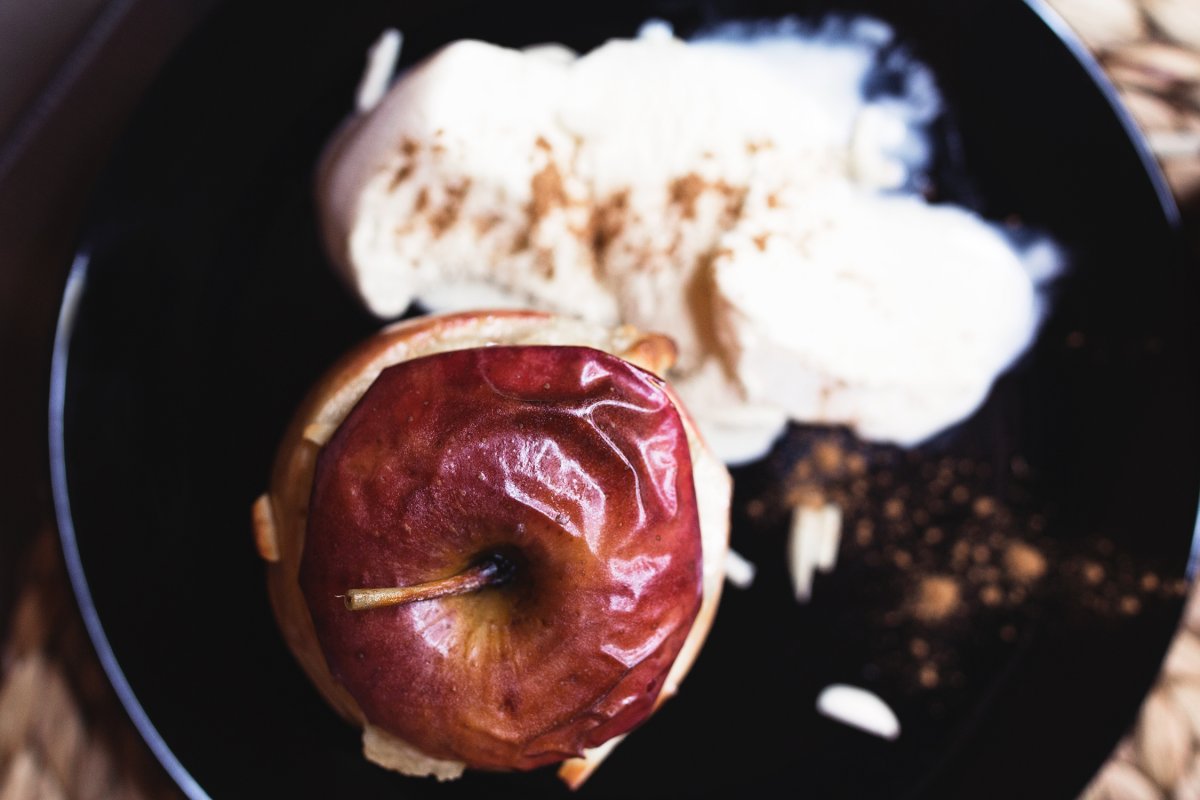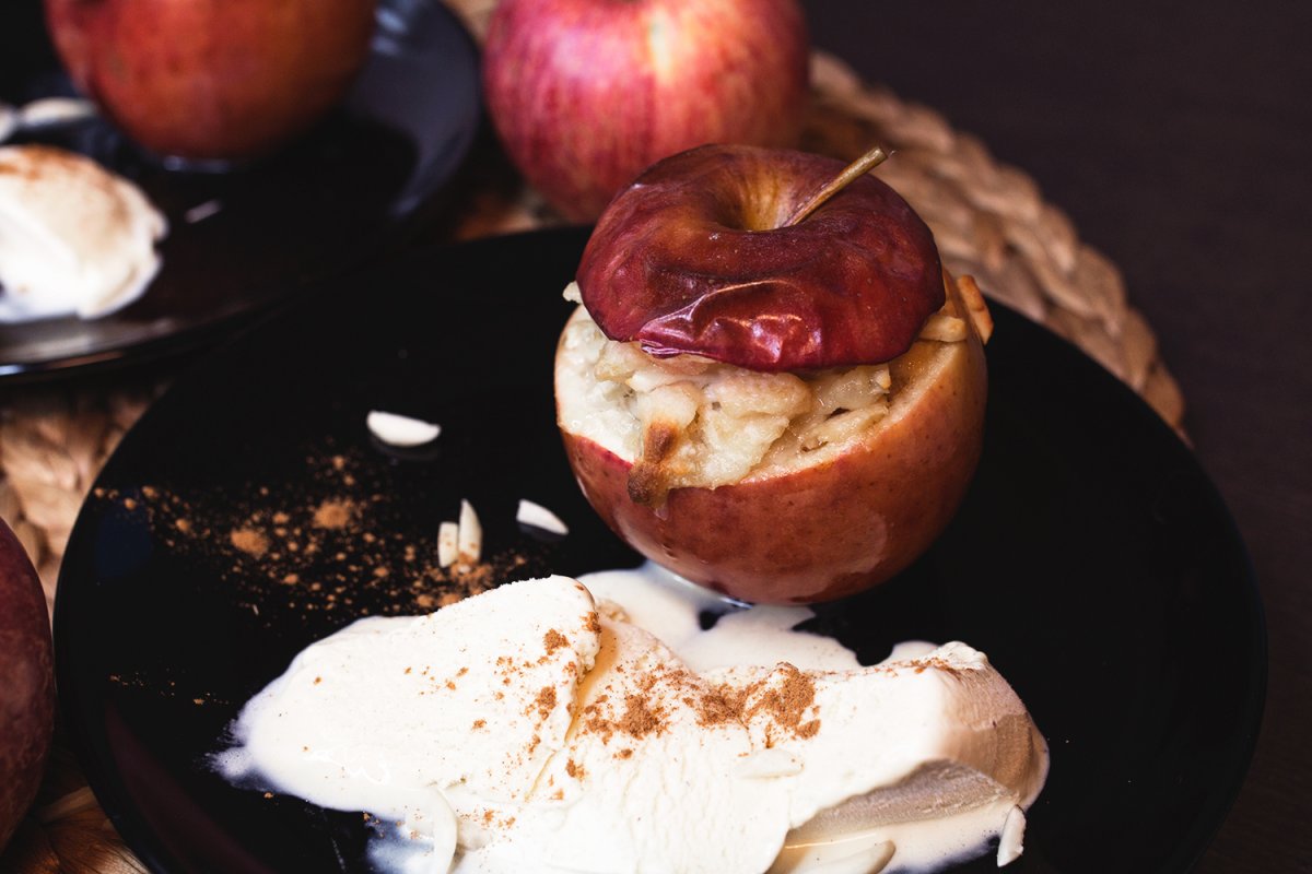 Bratäpfel sind schnell zubereitet und ein leckeres Dessert für die Festtage. Ich genieße sie am liebsten am Nachmittag zum Kaffee, aber auch als Nachspeise zum Festtagsmenü sind Bratäpfel ein Hochgenuss. Die Äpfel lassen sich mit vielen unterschiedlichen Leckereien füllt. Sehr gerne fülle ich die Äpfel mit Nüssen, Zimt und Marzipan – so schmeckt für mich einfach Weihnachten. Auch das Zusammenspiel von heißen und kalten Komponenten macht mir dieses Dessert so schmackhaft. Wer noch auf der Suche nach einem Last-Minute-Dessert ist, der kommt an Bratäpfeln einfach nicht vorbei. Oder was meint ihr?