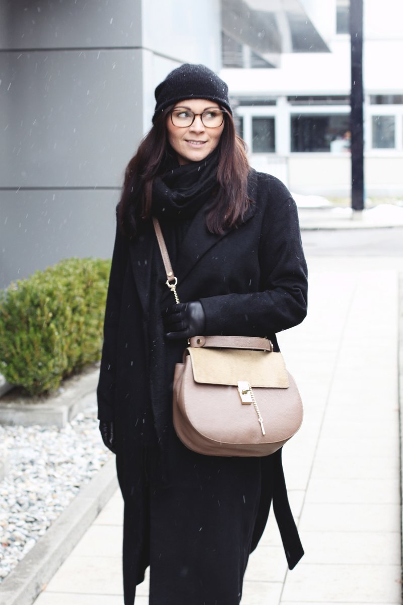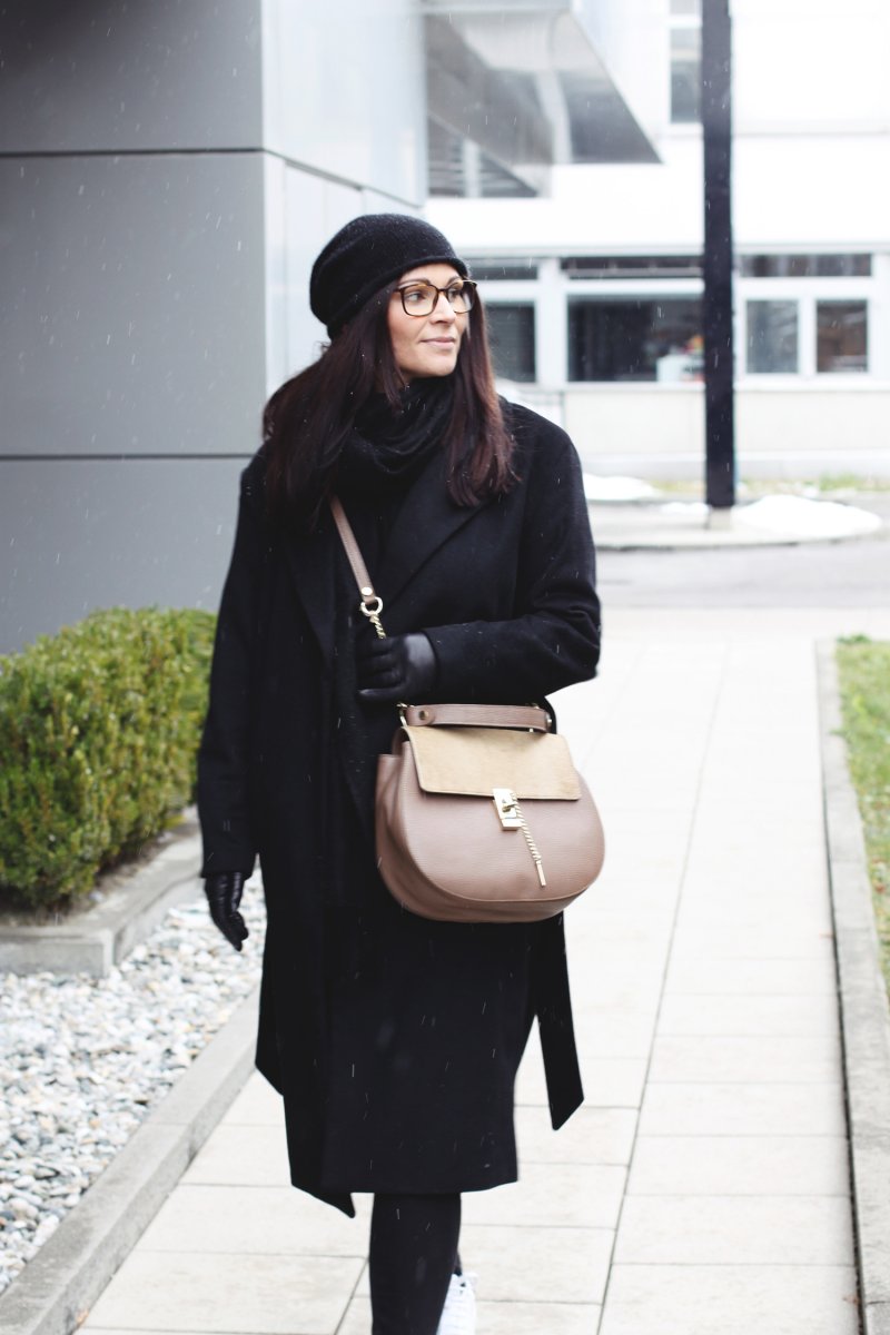 Heute zeige ich euch ein Winteroutfit mit schwarzem Wollmantel das ich euch in meinem Outfit Innsbruck Hafelekarspitze schon angekündigt habe. Ich stelle euch einen „All over Black“ Look mit weißen Sneakern vor.