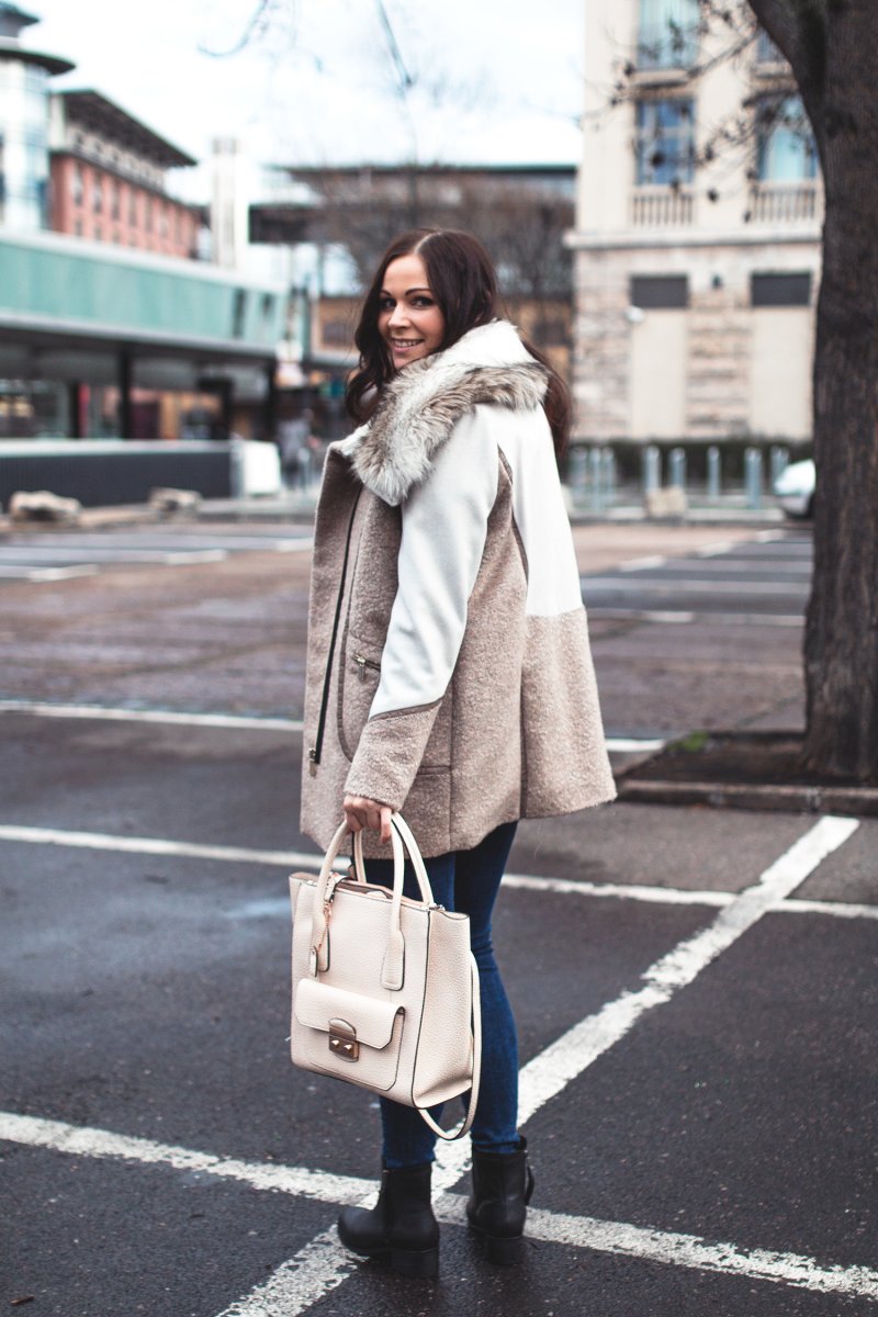 Der Wintermantel von River Island ist wie gemacht für das warme Wetter und die perfekte Jacke für den Übergang. Irgendwie seltsam, dass ich Ende Dezember von Übergangsjacken rede, aber bei uns waren es gestern 15 Grad. Da könnte ich auch glatt auf die Jacke verzichten und nur zum dicken Pullover greifen. Aber mit dem Mantel kommt das Outfit einfach besser zur Geltung. Besonders gut an dem Mantel gefällt mit die Kombination aus Kunstfell und unterschiedlichen Beige-Nuancen. Für mich ist dieser Mantel der Beweis, dass Kunstfell überhaupt nicht billig wirkt.