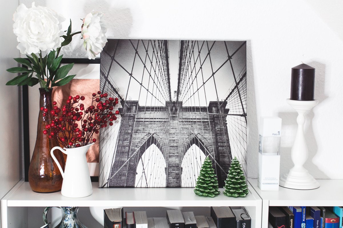 In meinem Wohnzimmer habe ich mich für ein architektonisches Bild entschieden. Die weltbekannte Brooklyn Bridge ziert jetzt mein Billy Regal. Das Bild ist für mich Entspannung pur.