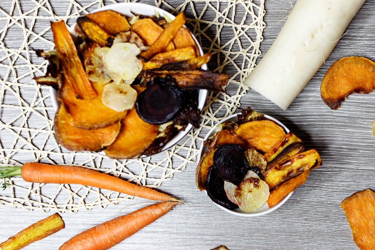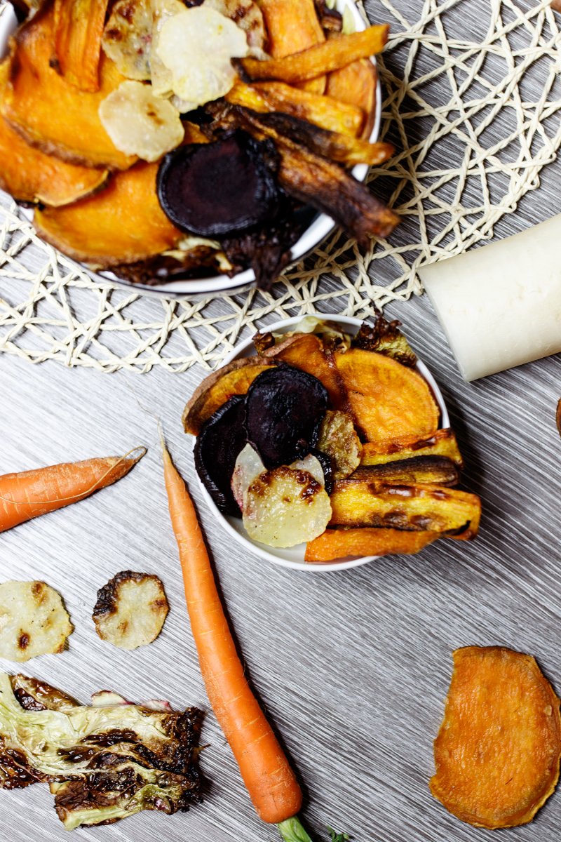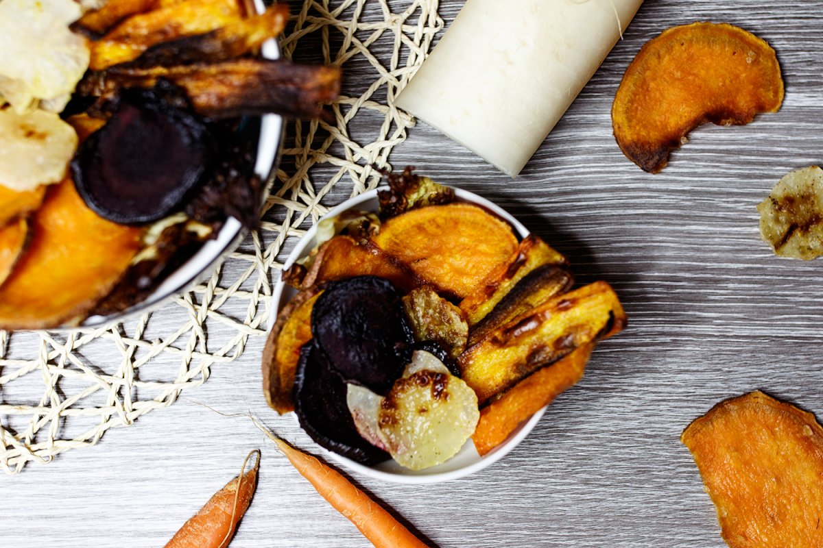 Gemüsechips mit Süßkartoffeln, Rote Bete, Rettich, Karotten und Grünkohl