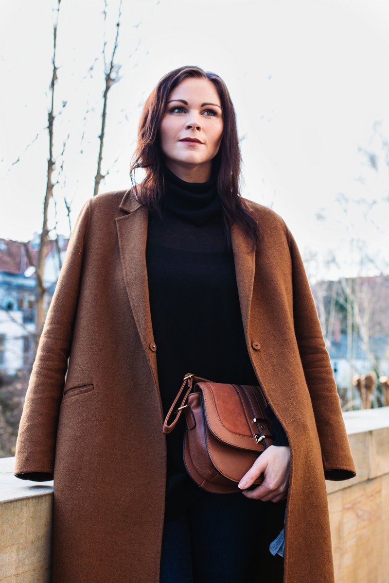 Ein brauner Wollmantel ist auch ein Klassiker im Schrank und man kann ihn sehr gut kombinieren. :-*
