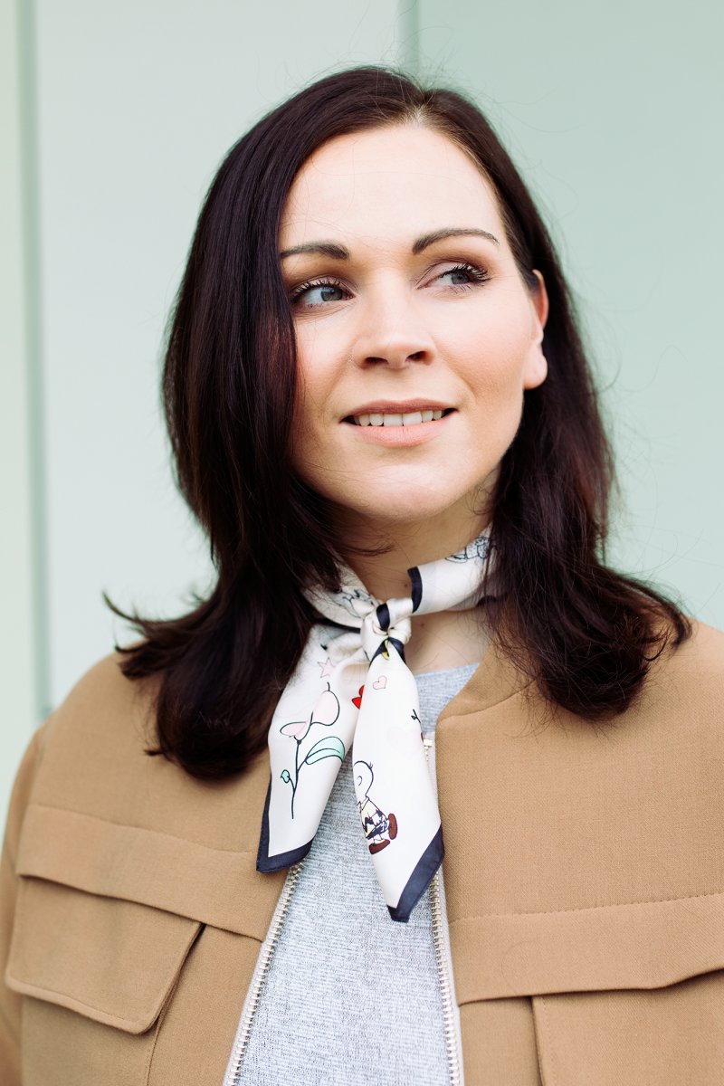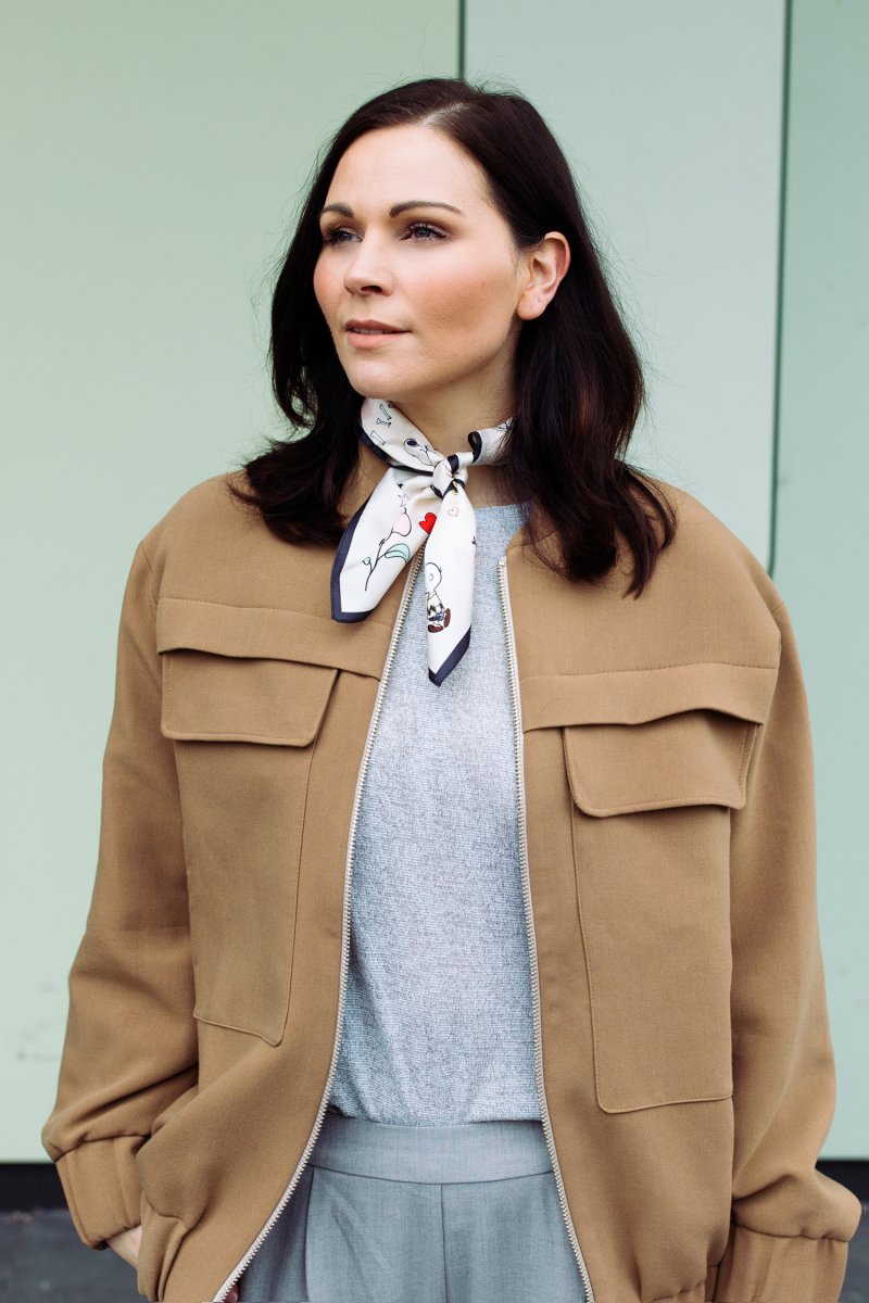 Um den Look noch ein wenig aufzupeppen, entscheide ich mich für auffällige Details und wähle eine Laptoptasche von affentor und ein Halstuch, beide mit auffälligen Prints versehen. Meine Zuneigung zu schönen Halstüchern ist euch ja bereits bekannt, ich habe euch in diesem Beitrag meine liebsten Bindetechniken mit dem eleganten Tuch bereits gezeigt.