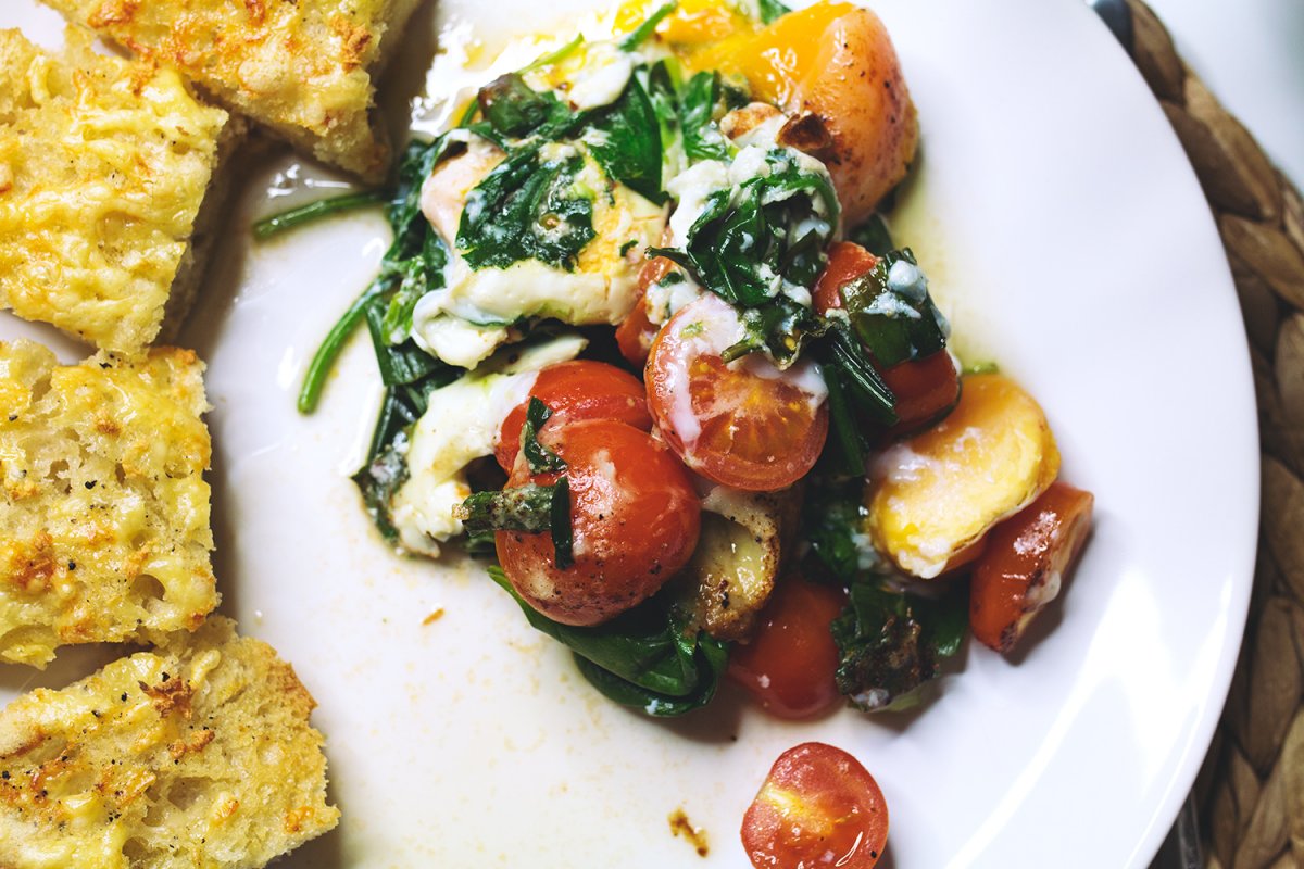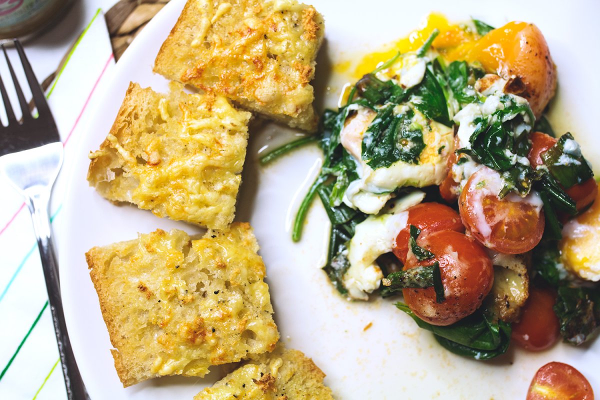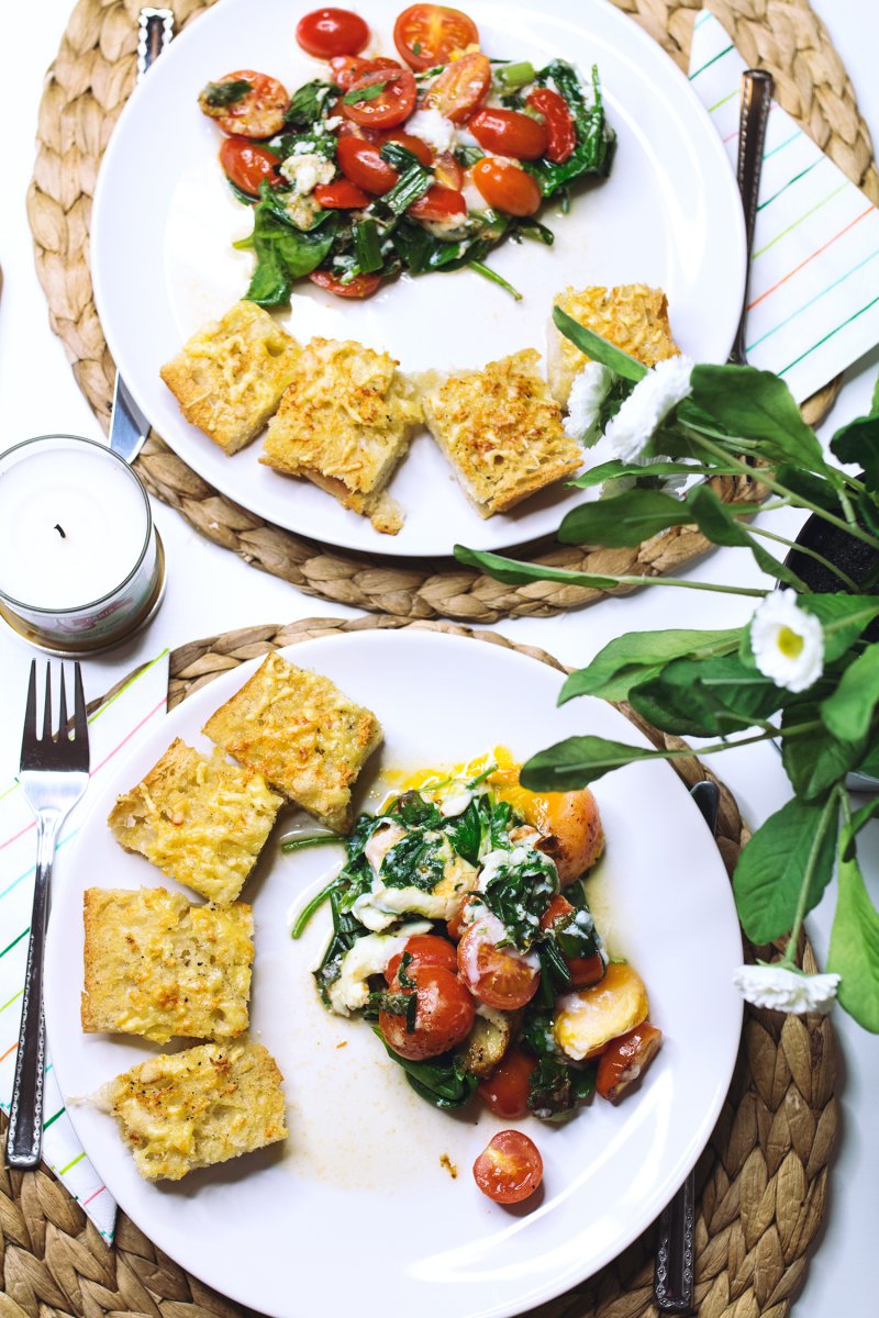 Zubereitung des gebackenen Spinat-Curry mit Knoblauchbrot