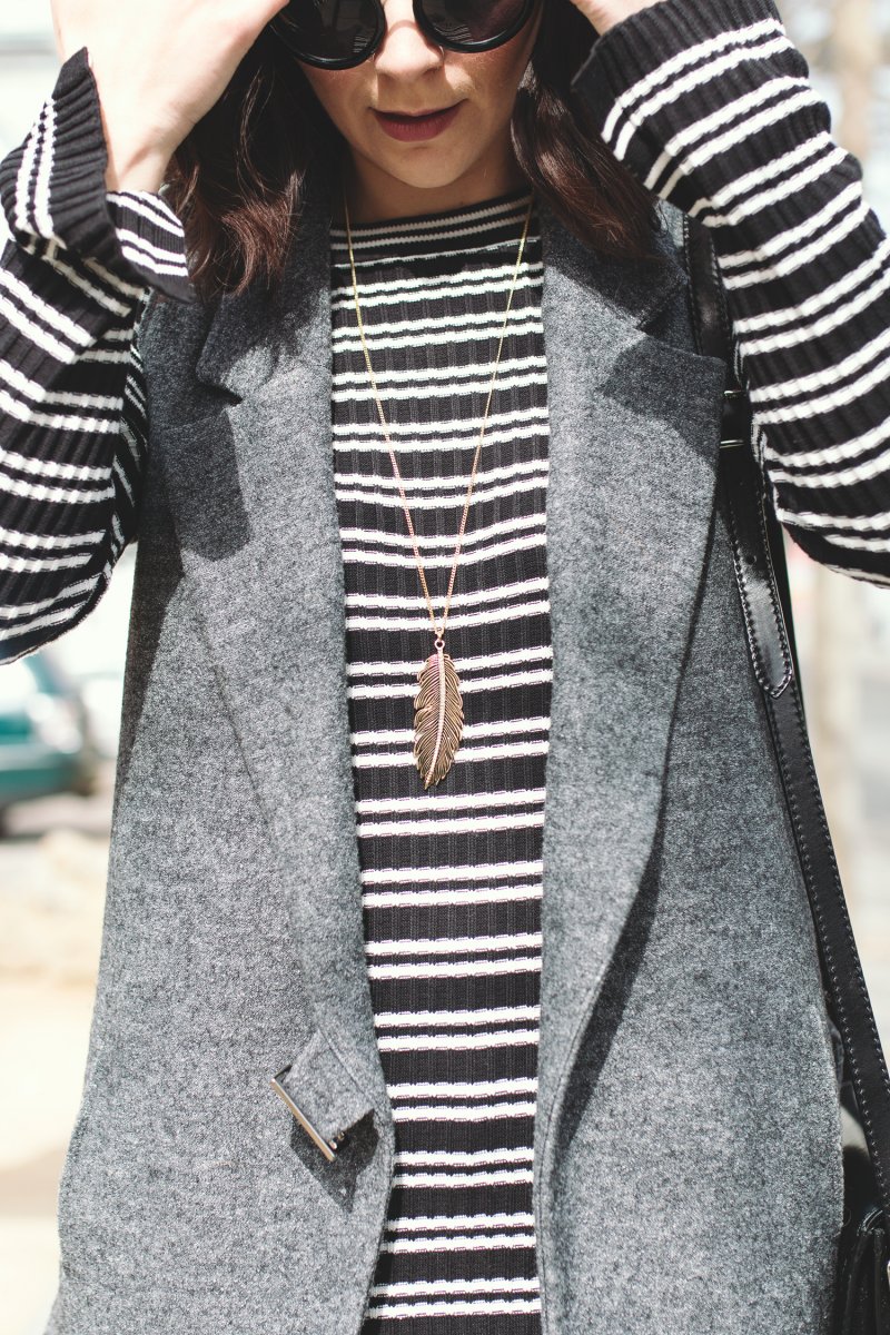 Komplettiert wird mein Look durch die graue Zara Weste, die ich euch schon in ganz vielen Outfits hier auf Kleidermaedchen gezeigt habe. Auch im Frühling macht sie eine sehr gute Figur und lässt sich super tragen. Um den Hals schwinge ich mir noch eine schöne Kette, diese habe ich letzte Woche bei Tchibo geschenkt bekommen. Das Modell gefällt mir so gut und passt super zu meinem heutigen Outfit. Die Kette bekommt ihr übrigens ab den 19.04 in allen Tchibo Filialen zu kaufen.