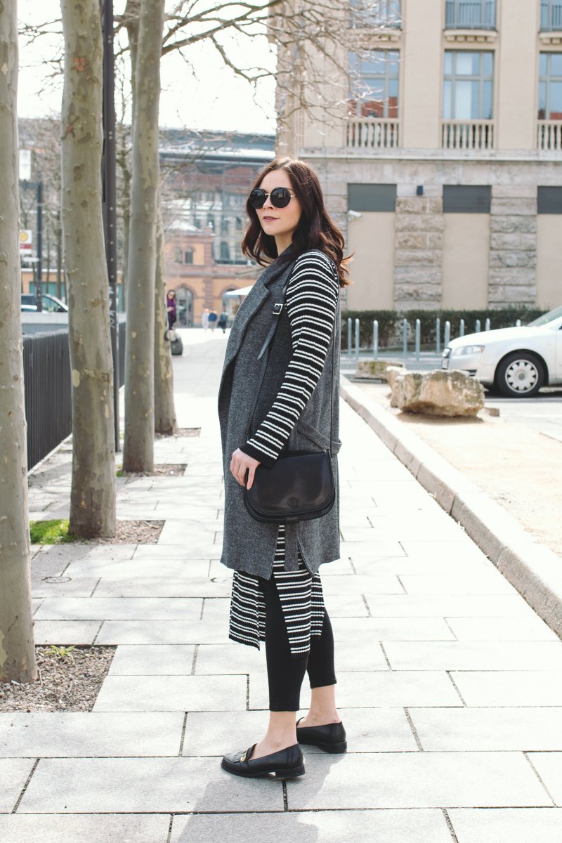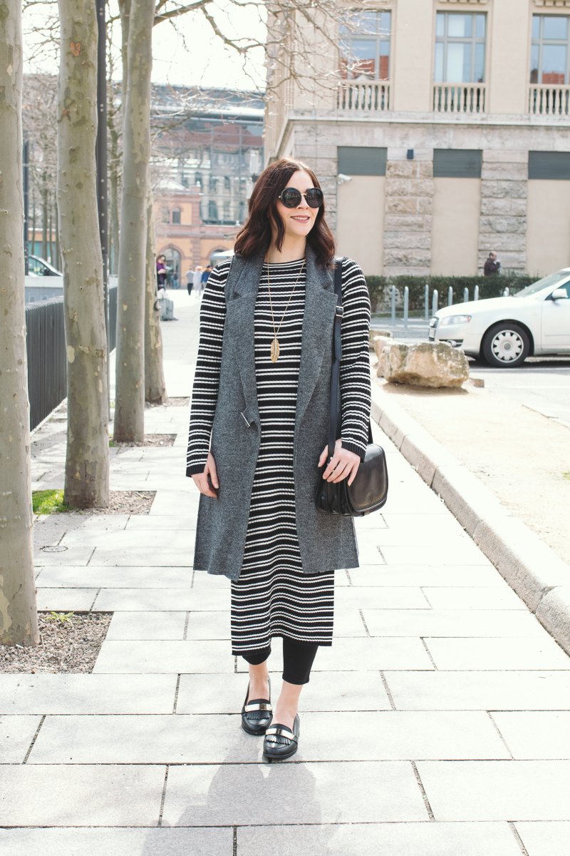 Wie gefällt euch mein Frühlingslook mit gestreiftem Maxikleid, asos Slippern und Topshop Jeans?