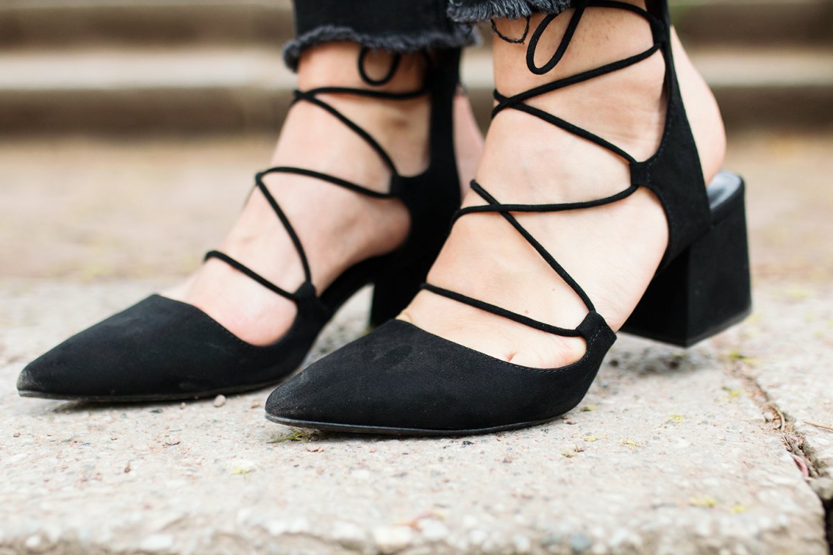 Wie gefällt euch das Outfit mit apricot Balzer und Lace Up Flats?