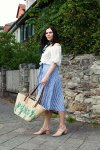 In diesem Outfit habe ich mich für einen starken Kontrast entschieden, auch weil ich das dunkle Marineblau der Bluse noch einmal aufgreifen wollte. Ich kombiniere eine schwarze Jeans und schwarze Lace Up Flats zu dem farbenfrohen Outfit. Abgerundet wird mein Look mit der schwarzen Maxwell Scott Tasche, die ich euch in diesen beiden Outfits schon gezeigt habe:
