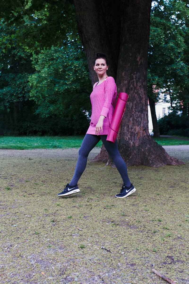 Im Sommer bin ich gerne in der Natur. Das Grün gibt mit Motivation und lässt mich entspannen. Alles blüht und gedeiht. Hände hoch, wer da nicht gerne, das Fitnessstudio gegen die Natur eintauscht. Dass ich regelmäßig laufen gehe, wisst ihr ja bereits aus diesem Beitrag. Neu hinzugekommen ist, dass ich einmal die Woche Schwimmen gehen und jetzt auch zum Yoga schlendern möchte. Natürlich nicht ohne den richtigen Style im Gepäck zu haben.