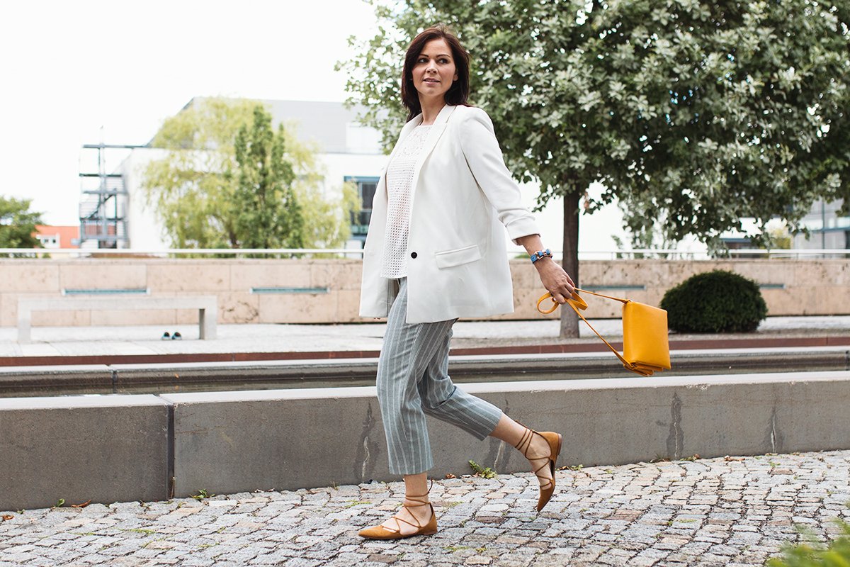 Es muss nicht immer nur teuer sein. Oft sind im Sale auch wahre Schnäppchen versteckt. So ein Schnäppchen ist dieser weiße Blazer von Mango. Er ist weit geschnitten und trägt sich sowohl zu eleganten Look als auch als lässige Variante im Alltag. Den müsst ihr euch zulegen.