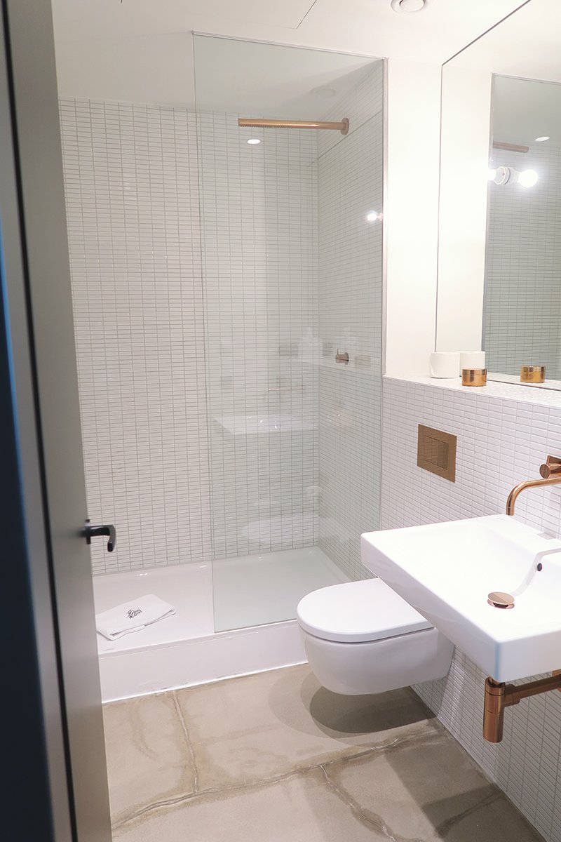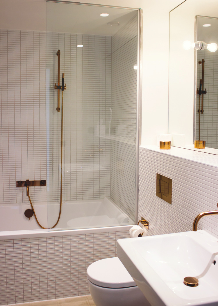 Auch das Badezimmer lies keine Wünsche offen. Es war clean in Weiß gehalten mit messingfarbenen Armaturen – das Raumklima wirkte dadurch sehr edel und zeitlos.