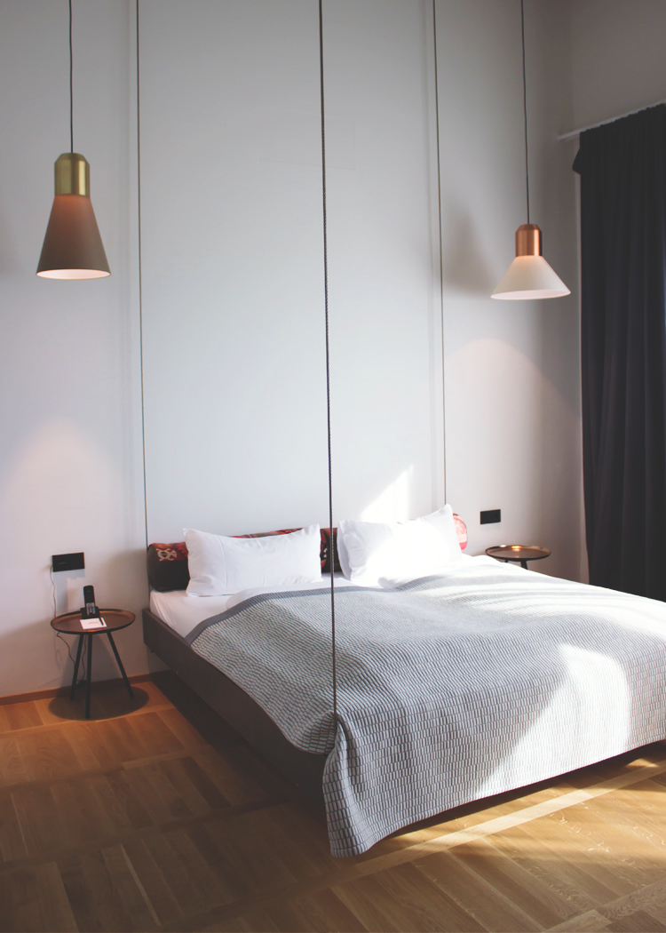 Begeistert bin ich auch von dem tollen Beleuchtungskonzept des Zimmers. Die Lampen boten ein angenehmes Licht und sahen dazu auch noch so schön aus. Besonders gut gefällt mir, dass die Lampen trotz unterschiedlichem Design so gut miteinander harmonieren. Da schaute ich gerne nach oben!