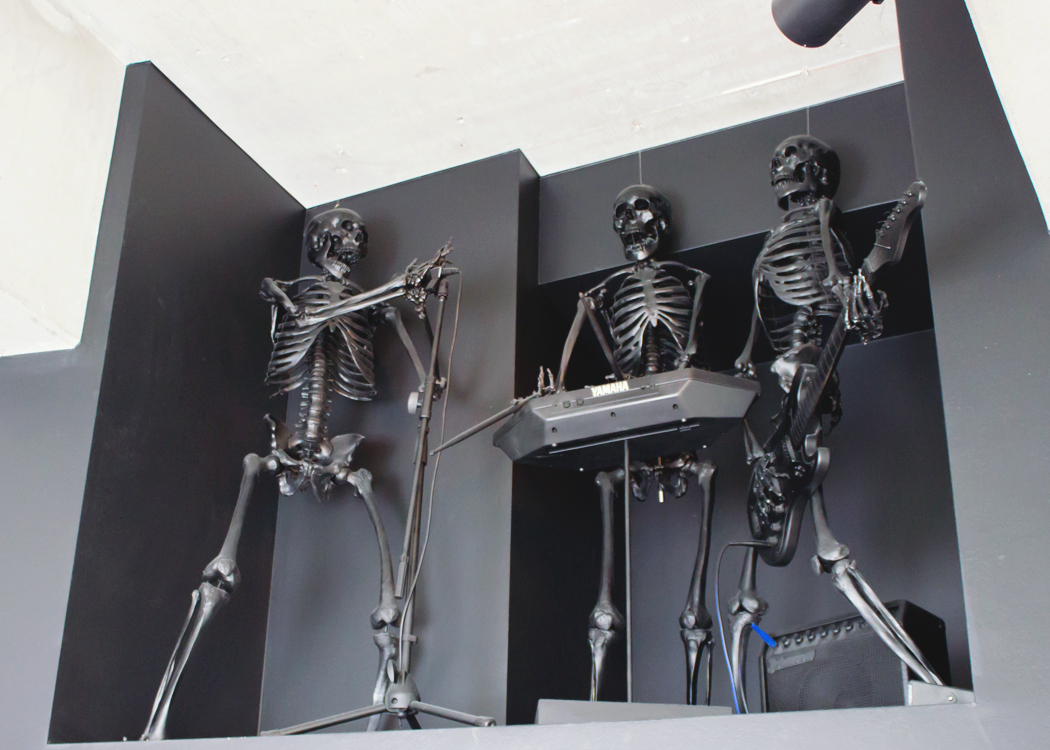 Auch das Zimmer, in dem Sara übernachtet hat, hatte einige Highlights zu bieten. Das Zimmer ist definitiv das Ausgeflipptes, was ich bisher gesehen habe. Über dem Bett befindet sich auf circa 3 Meter Höhe eine Vertiefung, in der 3 Skelette mit Mikrofon, Gitarre und Keyboards stehen. Als wäre das nicht schon verrückt genug, gibt es in diesem Zimmer auch noch einen Lichtschalter, der flackerndes Diskolicht auf Knopfdruck auf die 3 coolen Typen wirft. Ein zweites Highlight ist der Plattenspieler in diesem Raum, der voll funktionstüchtig ist. Passend dazu gibt es eine große Plattensammlung die für jeden Geschmack, das richtige bietet.