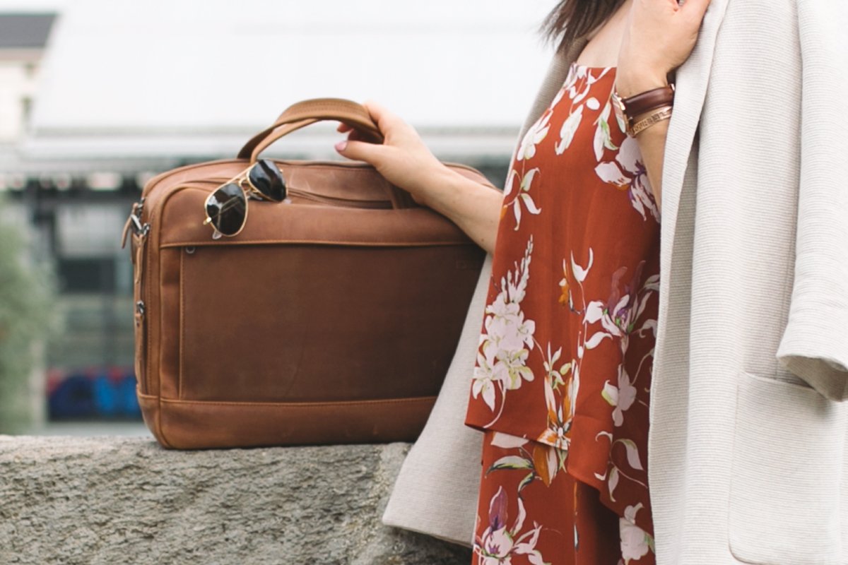 orange flower dress by Mango, Birkenstock sandals and A E P bag