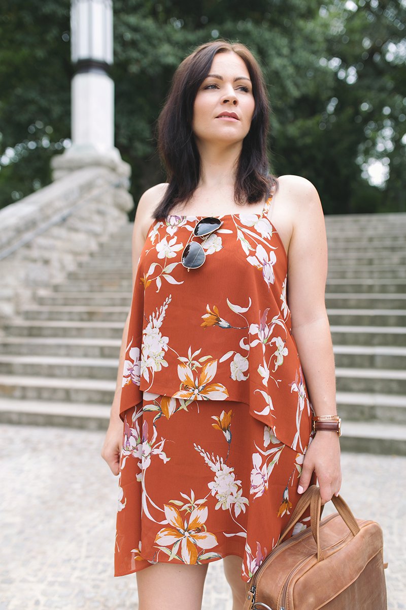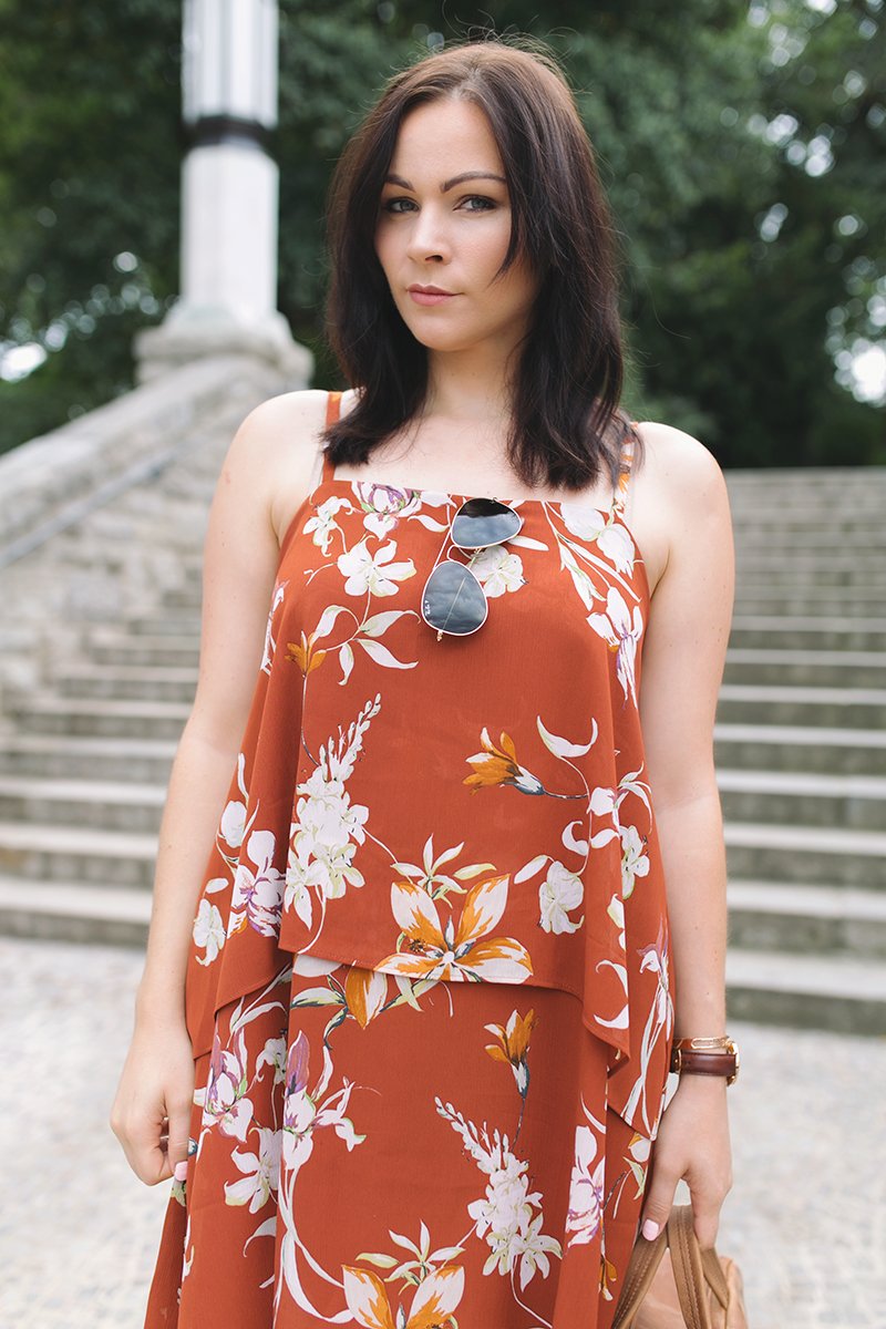 I’m in love with dresses and also with the orange color. You can see orange in every magazine and online store, I think in the upcoming autumn season orange is the new black and you must wear it. Until it is autumn I’m wearing orange in summer too. Today my dress is orange with a large flower print.