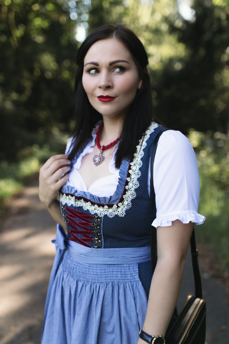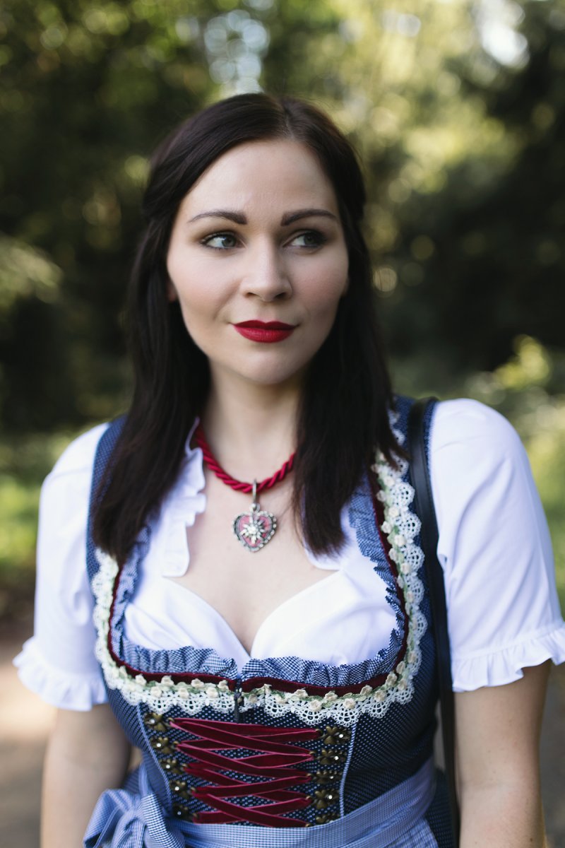 Ich hatte ja in meinem ganzen Leben noch nie ein Dirndl an, aber es soll ja ein ganz besonderes Gefühl sein. Deine Wahl in so klassischen Farben finde ich sehr gelungen, vor allem mit den roten Lippen und der roten Kette dazu. Das wirkt sehr elegant.