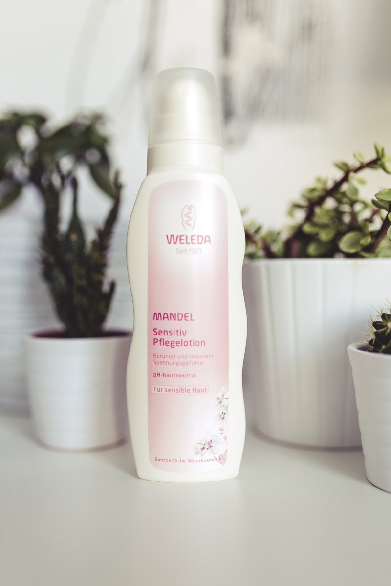 Im Sommer wie im Winter ist meine Haut ein Sensibelchen, das ich mit äußerster Vorsicht behandeln muss. Ein Produkt, das dafür bestens geeignet ist, ist die Weleda Mandel Sensitiv Pflegelotion. Im August habe ich die leichte Lotion jeden Tag getragen und bin von der Pflegewirkung begeistert. Warum? Die Lotion zieht superschnell ein, liegt dabei sehr leicht auf der Haut und hinterlässt keinen Fettfilm. Außerdem fühlt sich meine Haut supergepflegt an. Mandelöl und Bienenwachs spenden meiner Haut jeder Menge Feuchtigkeit. Dieses Produkt wandert mir in den Sommerurlaub! Auch weil ich den Duft von Mandeln auf meiner Haut liebe. Definitiv für mich ein Nachkaufprodukt, das ihreuch nicht entgehen lassen solltet.