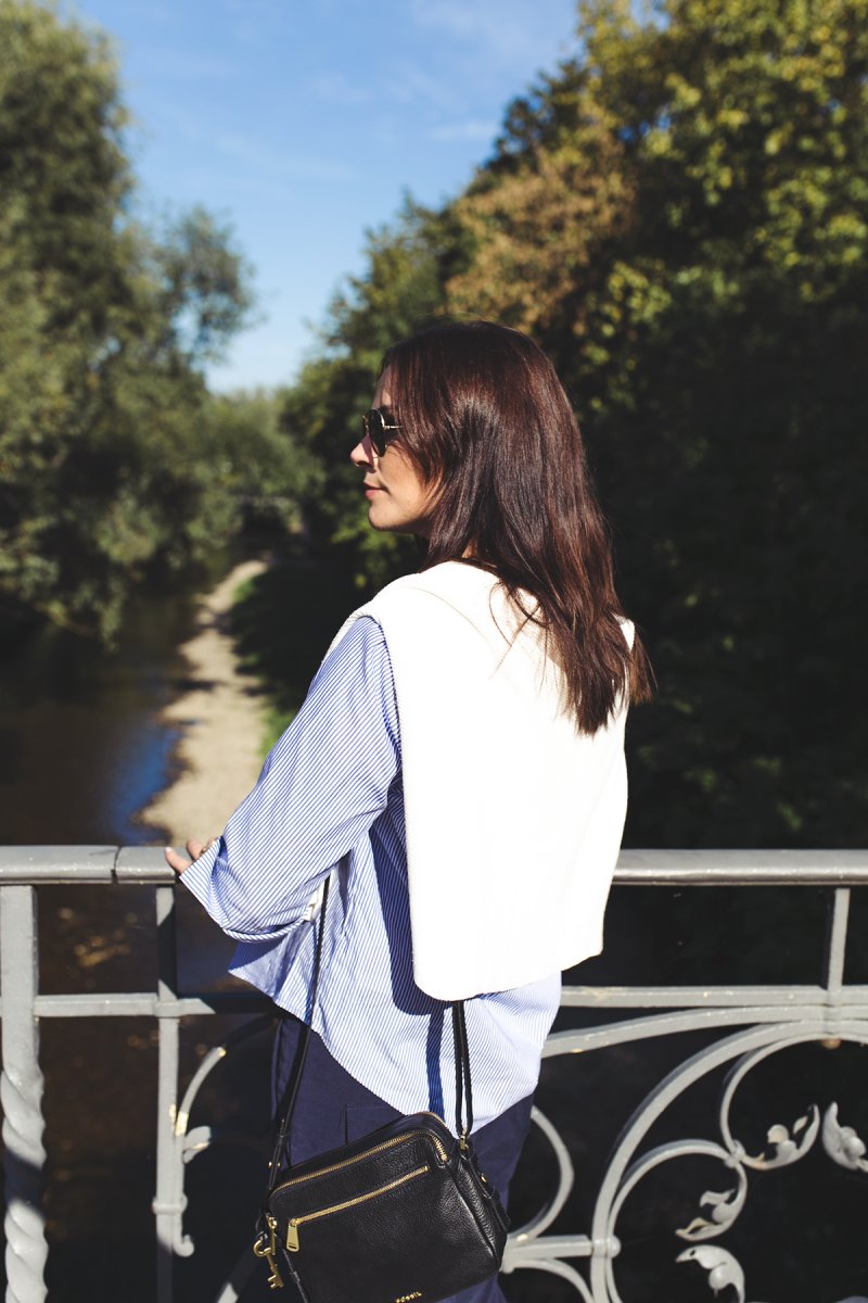 Zu der eleganten Off-Shoulder Bluse, die ich in meinem heutigen Outfit nicht unter der Schulter, sondern auf der Schulter trage. Diese Bluse kombiniere ich mit einem weißen Pullover, denn diesen kann ich ganz schnell überziehen, wenn es kühler wird. Mit dabei auf unserer Tour war auch die kleine Fossil Piper Bag, in der ich alles Wichtige verstaut habe. Dort fand auch meine Sonnenbrille ihren Platz, wenn ich sie gerade mal nicht auf der Nase getragen habe.