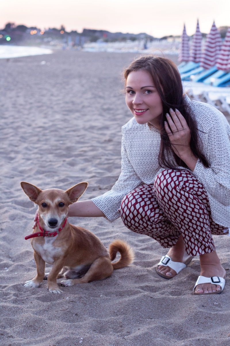 Würde ich mir einen Hund anschaffen, wäre es wohl genau so eine süße Promenadenmischung. Den kleinen Kerl habe ich in meinem Side Urlaub 2014 kennengelernt und mich sofort verliebt. Der kleine Kerl gehörte zu einem der Beach Clubs und tänzelte die ganze Zeit um uns herum. Er musste einfach mit aufs Foto, da rückt der Look schon einmal in den Hintergrund und das obwohl wie farblich ein super Team abgeben. Das ganze Outfit könnt ihr hier bestaunen.