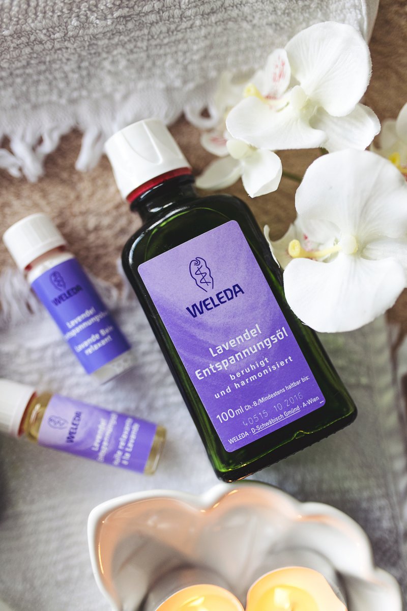 Winterzeit ist Badezeit. In dieser Zeit funktioniere ich mein Badezimmer gerne mal zum Wellnesstempel um. Ausgangspunkt meiner Auszeit im Badezimmer ist ein entspannendes Vollbad. Dieses Ritual vollziehe ich meistens am Freitagabend, kurz vor dem Wochenende. Wichtig ist dabei auch die Atmosphäre. Ich zünde mir Kerzen an und lege entspannende Musik ein – so kommt mein Körper am besten zur Ruhe. Ich sperre den Alltag aus meinem Badezimmer und lasse mir eine Wanne voller Entspannung ein. Mit dabei ist das Weleda Lavendel Entspannungsbad – ohne Lavendel geht es auch in der Badewanne bei mir nicht. Wie ihr wisst, liebe ich den Geruch und in meiner Badewanne macht er sich einfach umwerfend gut. Für intensive Geruchsmomente in der Badewanne gebe ich des Öfteren noch einige Tropfen des Lavendel Entspannungsöls mit in das Badewasser. Das Bad entspannt und hilft mir neue Energie zu tanken.