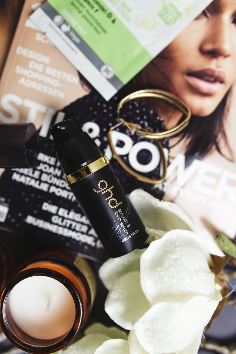 Nicht nur mein Gesicht benötigt im Winter etwas mehr Pflege, auch meine Haare werden gerne zur absoluten Winterzicke, wenn die Temperaturen absinken. Ich habe dann mit trockenen Spitzen und aufgeladenen Haaren zu kämpfen. Abhilfe schafft das ghd Smooth & Finish Serum, denn es verleiht meinen Haaren Glanz und Geschmeidigkeit. Außerdem schützt es die Spitzen vor Spliss – das Serum ist ein wahrer Alleskönner.