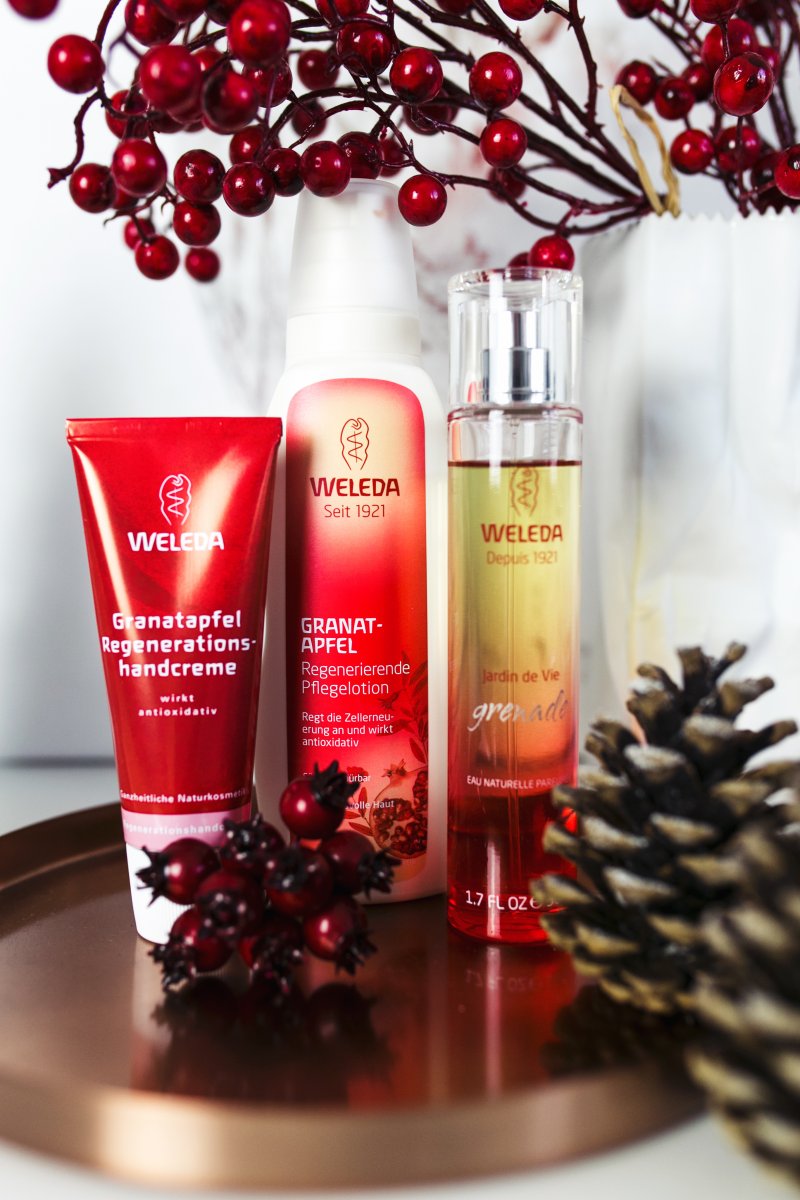 ein wundervolles Set hat sich am dritten Advent in deinem Adventskalender versteckt Weleda und Granatapfel, eine hervorragende Verbindung 🙂