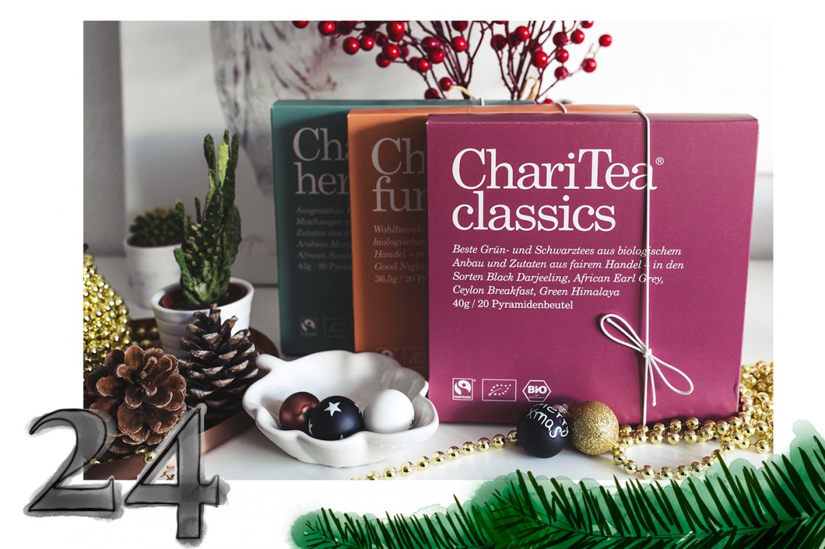 - ChariTea classics: „Beste Grün- und Schwarztees aus biologischem Anbei und Zutaten aus fairem Handel – in den Sorten Black Derjeeling, African Earl Grey, Ceylon Breakfast, green Himalaya.“