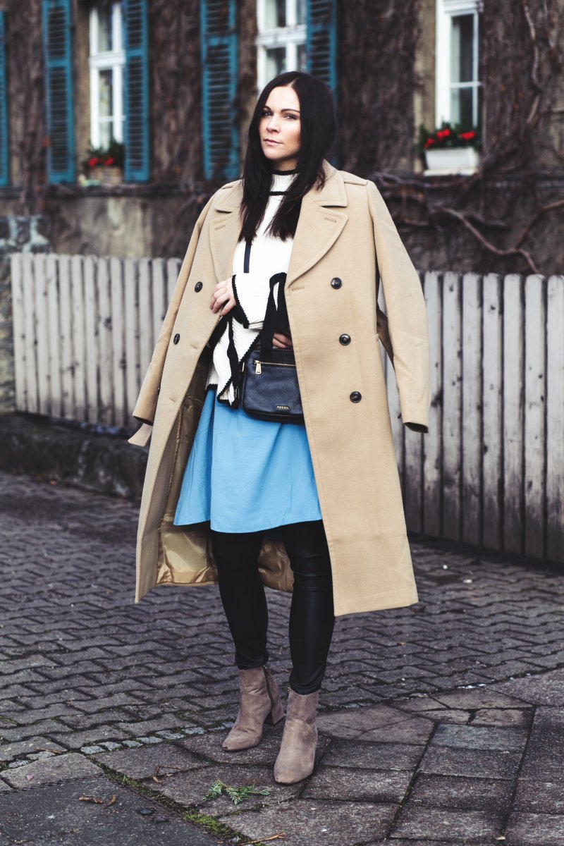 Im Winter ist ein warmer Mantel das A und O. Ich liebe Mäntel und habe von klassischen Modellen bis hin zu ausgefallenen Modellen alles in meinem Kleiderschrank. Für die Fashion Week habe ich mich für ein elegantes klassisches Modell in Beige entschieden. Dass zudem durch seine Länge auch noch meine Beine super warmhält.