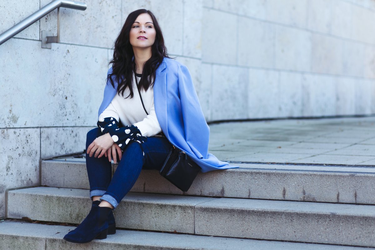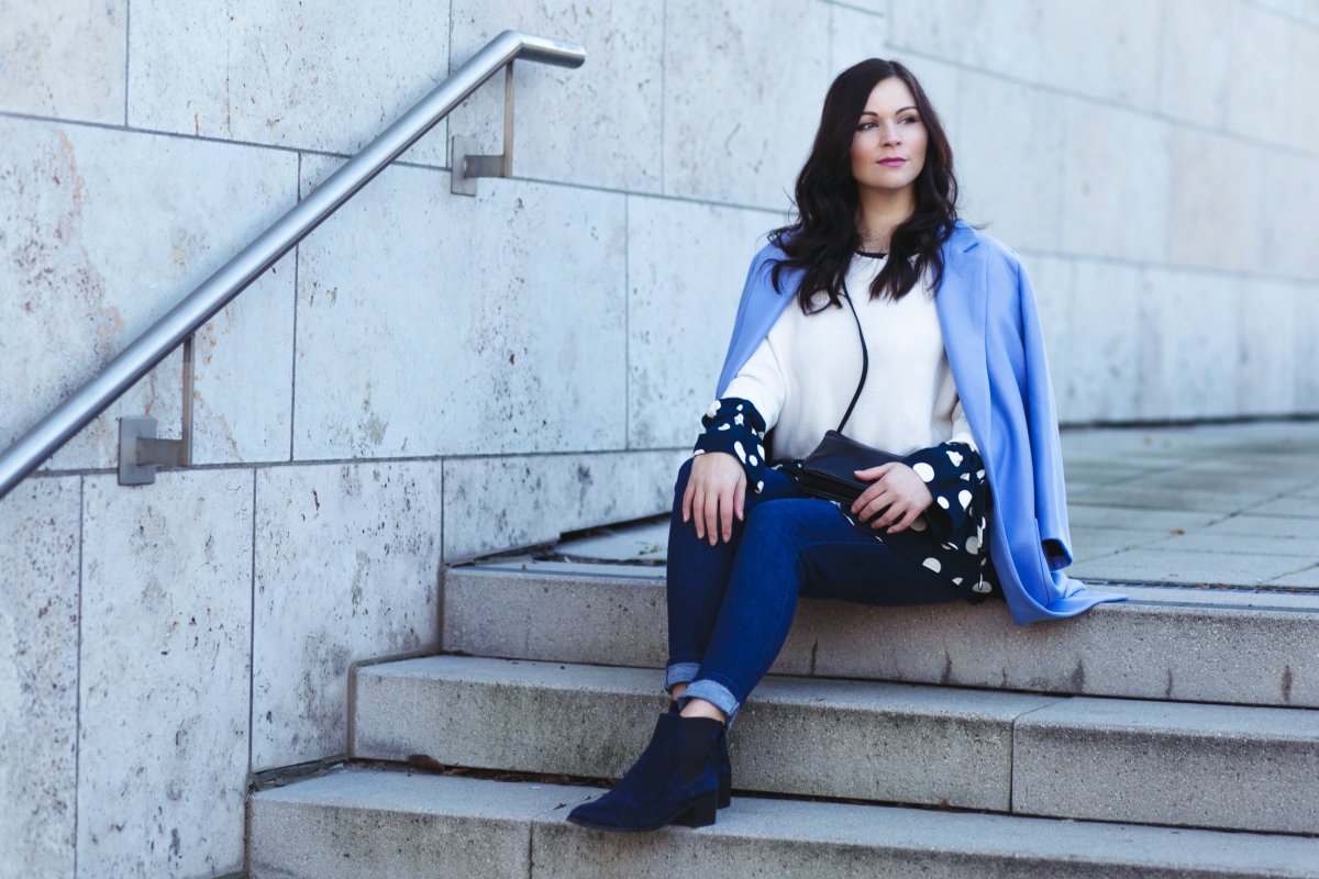 Was für ein toller Look liebe Jessy! Ich finde es toll, wie du die Punkte schlicht gehalten hast. Der blaue Mantel passt auch perfekt dazu 🙂