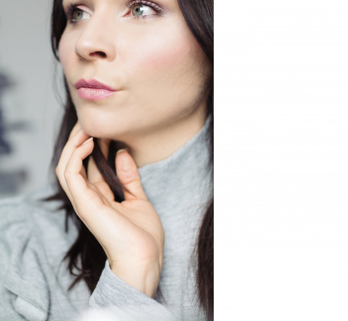 Jetzt gestalten wir den Teint frühlingshaft und bringen etwas Farbe ins Spiel. Auf meine Wangen trage ich den Light and Shadow Contouring Blush in der Farbe Rose Propose auf. Dafür mische ich die beiden Farbennuancen miteinander, trage das Blush auf meine Apfelbäckchen auf und lasse den Ton bis zu meinen Schläfen hin sanft auslaufen. Bei einem zarten Valentinstag und Frühlings-Make-up darf der Glow in dieser Saison nicht fehlen. Dafür gebe ich den Liquid Luminizer in einem zarten Roséton auf meine Wangenknochen, Nasenspitze sowie Lippenbogen auf und verblende diesen wieder mit dem Make-up-Schwamm.