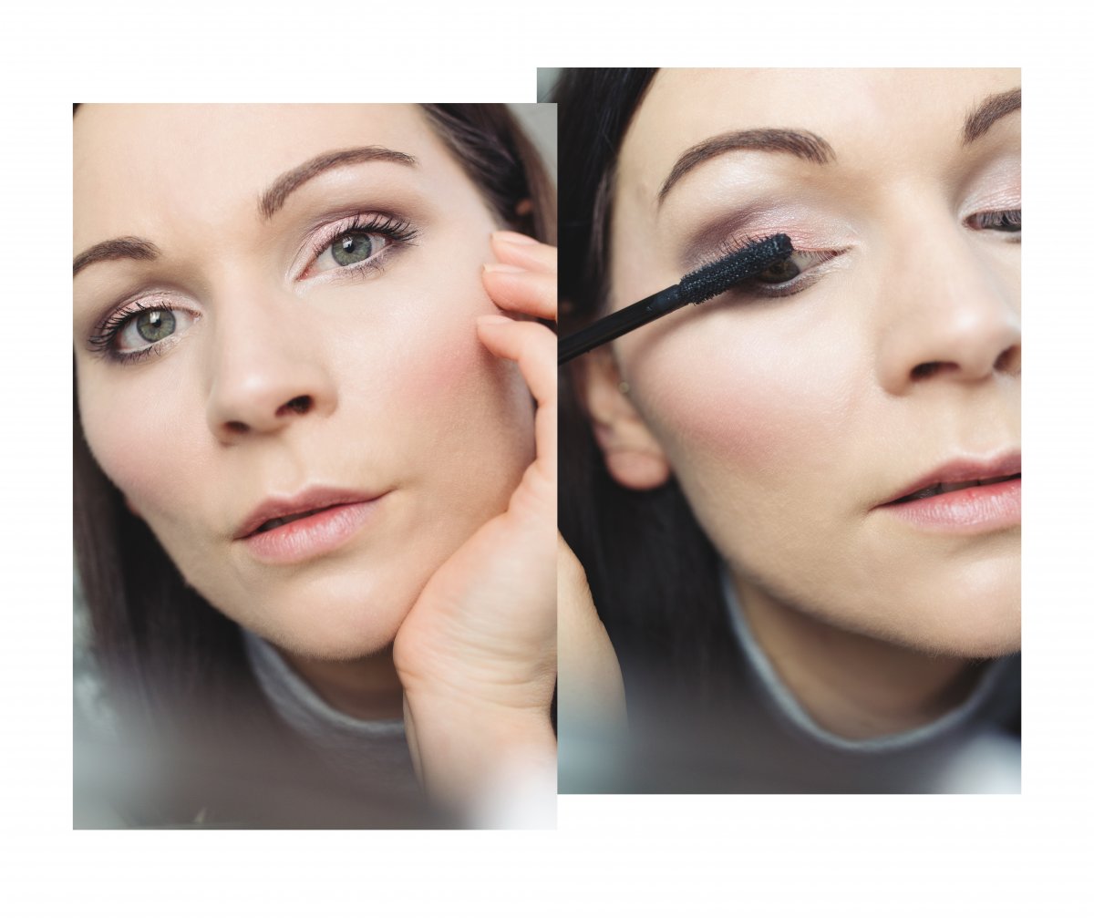 Anschließend sind die Augenbrauen an der Reihe. Sie style ich mit dem Slim’Matic Brow Pencil in der Farbe Dark. Der Stift ist sehr dünn und ermöglicht dadurch eine präzise Linienführung. Dadurch erzielt ihr ein sehr natürliches Ergebnis bei euren Augenbrauen. Bevor wir uns den Lippen zuwenden, kümmern wir uns noch rasch um den perfekten Augenaufschlag. Der gelingt ganz einfach mit der Rock Couture Extreme Volume Mascara – vor dieser Mascara bin ich wirklich sehr begeistert. Sie kann problemlos mit meiner Urban Decay Mascara mithalten, die ich euch in der Beauty-Reihe Typgerecht schon vorgestellt habe. Die Mascara verleiht meinen Wimpern einen unglaublichen Schwung und fächert die Wimpern dabei sehr schön auf. Sehr gut an der Mascara gefällt mir außerdem die Konsistenz. Die Mascara ist weder zu flüssig noch zu fest und lässt sich dadurch sehr einfach auftragen – ein wahrer Geheimtipp. Die Mascara ist übrigens auch, in einer wasserfesten Variante erhältlich.