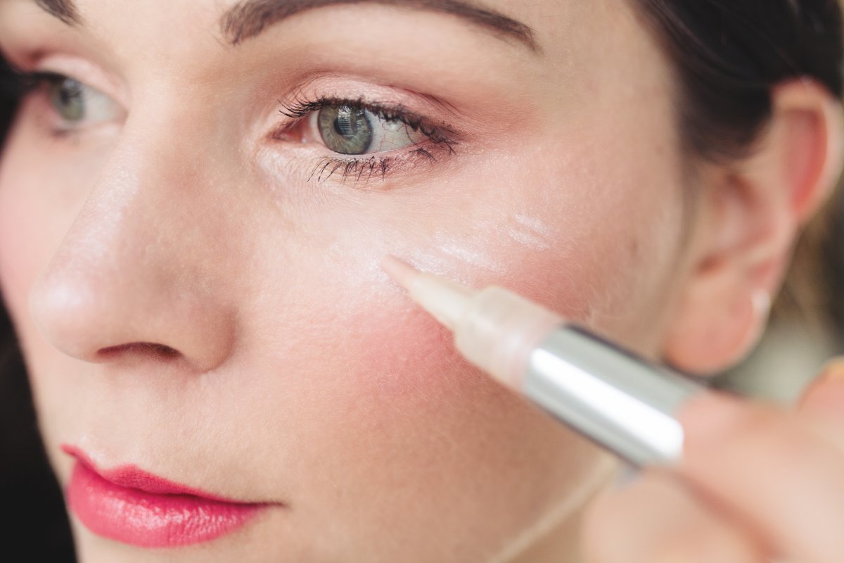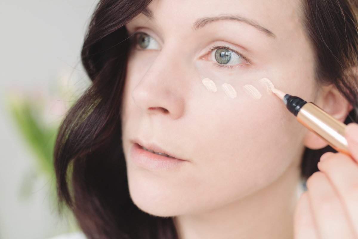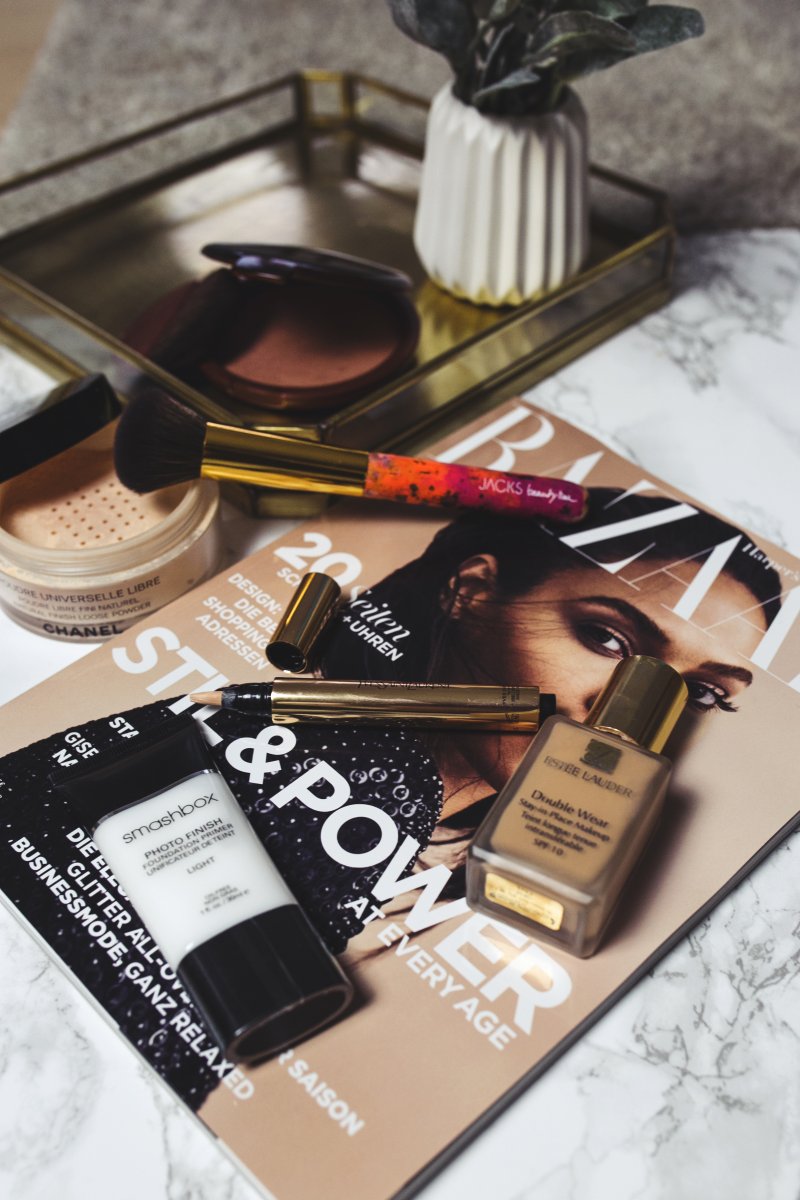 Dass romantische Valentinstag Make-up startet mit dem Teint. Als Primer verwende ich den smashbox Photo Finish Primer in Light. Der Primer ist perfekt für meine Mischhaut, denn er mattiert den Teint und minimiert gleichzeitig große Poren. Anschließend verwende ich meine liebste Foundation, die Estée Lauder Double Wear und mische sie mit einer Tagescreme. Ich trage die Foundation mit meinen Fingern auf mein Gesicht auf. Im nächsten Schritt verwende ich den Yves Saint Laurent Touche Éclat Concealer und trage ihn unter den Augen auf. Verblendet wird der Concealer wieder mit den Fingern, denn die geben mir die größte Flexibilität. Aber auch den Real Techniques Schwam ist eine gute Wahl um flüssige Produkte in die Haut einzuarbeiten.