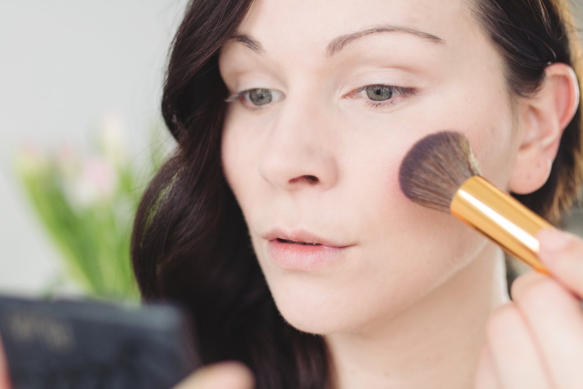 Nachdem der Concealer aufgetragen ist, sette ich mein Mauke-up mit dem Chanel Poudre Universelle Libre in der Farbe 25 Pêche Clair. Ich trage das Puder mit dem Jacks Beauty Line Pinsel in der Nummer 12 auf mein Gesicht auf und presse dabei das Puder in kreisenden Bewegungen auf meine Haut. Weiter geht es mit dem Konturieren. Dafür verwende ich den Estée Lauder Bronze Goddess Bronzer in 02 Medium. Den Bronzer gebe ich mit demselben Pinsel entlang meiner Wangenknochen auf mein Gesicht auf. Jetzt fehlt nur noch ein bisschen Farbe im Gesicht und der erste Schritt des Valentinstag Make-up kann abgeschlossen werden. Für etwas Farbe sorgt das Sleek Blush in der Farbe Flamingo – einem satten Pinkton. Diesen trage ich auf meine Apfelbäckchen auf und lasse ihn zu den Schläfen hin sanft auslaufen.