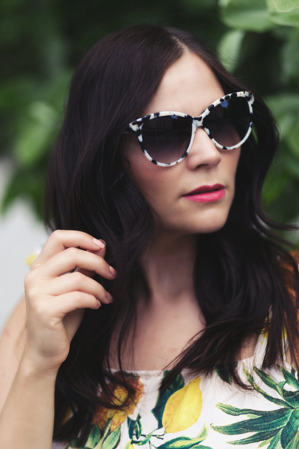 Es gibt zwei Sachen, denen ich im Sommer einfach nicht widerstehen kann. Zum einen sind das schöne Sommerkleider und zum anderen Sonnenbrillen. Erst vor zwei Wochen ist diese Sonnenbrille von Stella McCartney bei mir eingezogen – ihr kennt sie ja bereits aus meinem Business Casual Look mit Topshop Midirock. Auch in meinem heutigen Outfit ist sie wieder mit von der Partie, denn ich trage sie derzeit am liebsten auf meiner Nase. Und jetzt, wo sich der Sommer endlich zu erkennen gibt, will ich sie gar nicht wieder von meiner Nase setzen.