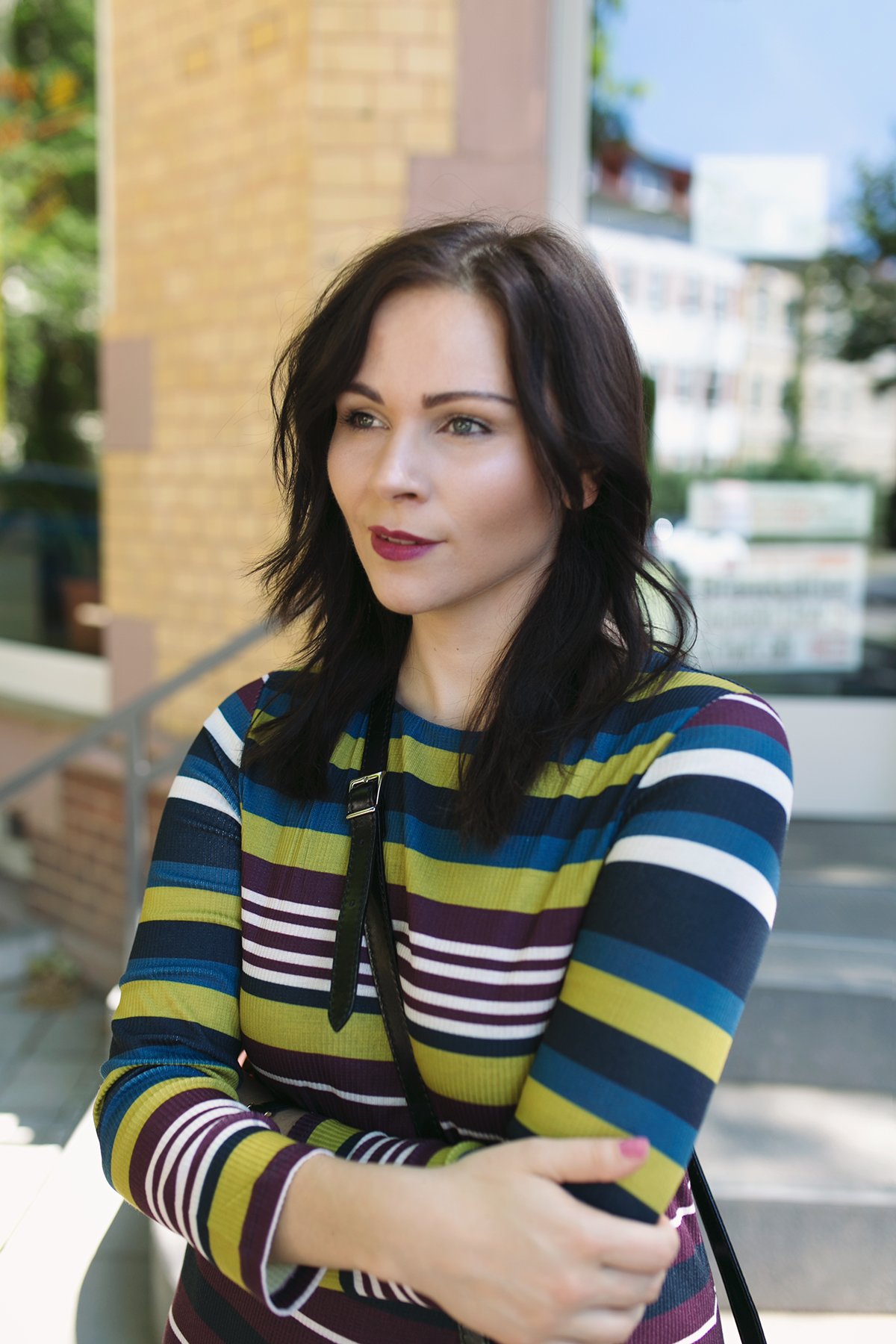Streifen sind diese Saison ein absolutes Must-have im Kleiderschrank. Wenn die Streifen dann noch bunt sind, umso besser. Ein Outfit mit bunt gestreiftem Midikleid habe ich euch im letzten Herbst bereits vorgestellt. Der Look kann sich aber durchaus auch an kühlen Sommertragen oder am Abend sehen lassen. Wie gefällt euch?