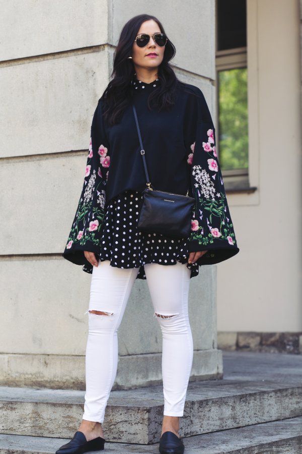 - Streetstyle mit Blusenkleid, Trompetenärmel Sweater und Loafers