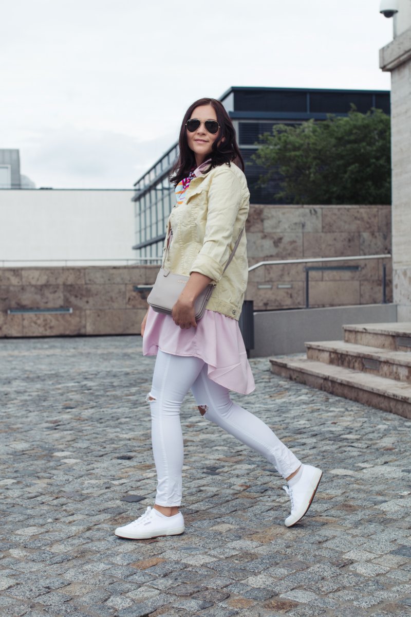 so eine Pastell-Gelbe Variante habe ich bisher noch nicht häufig gesehen, das bringt einen schönen frischen Wind. passt auch super zu weißen Jeans!