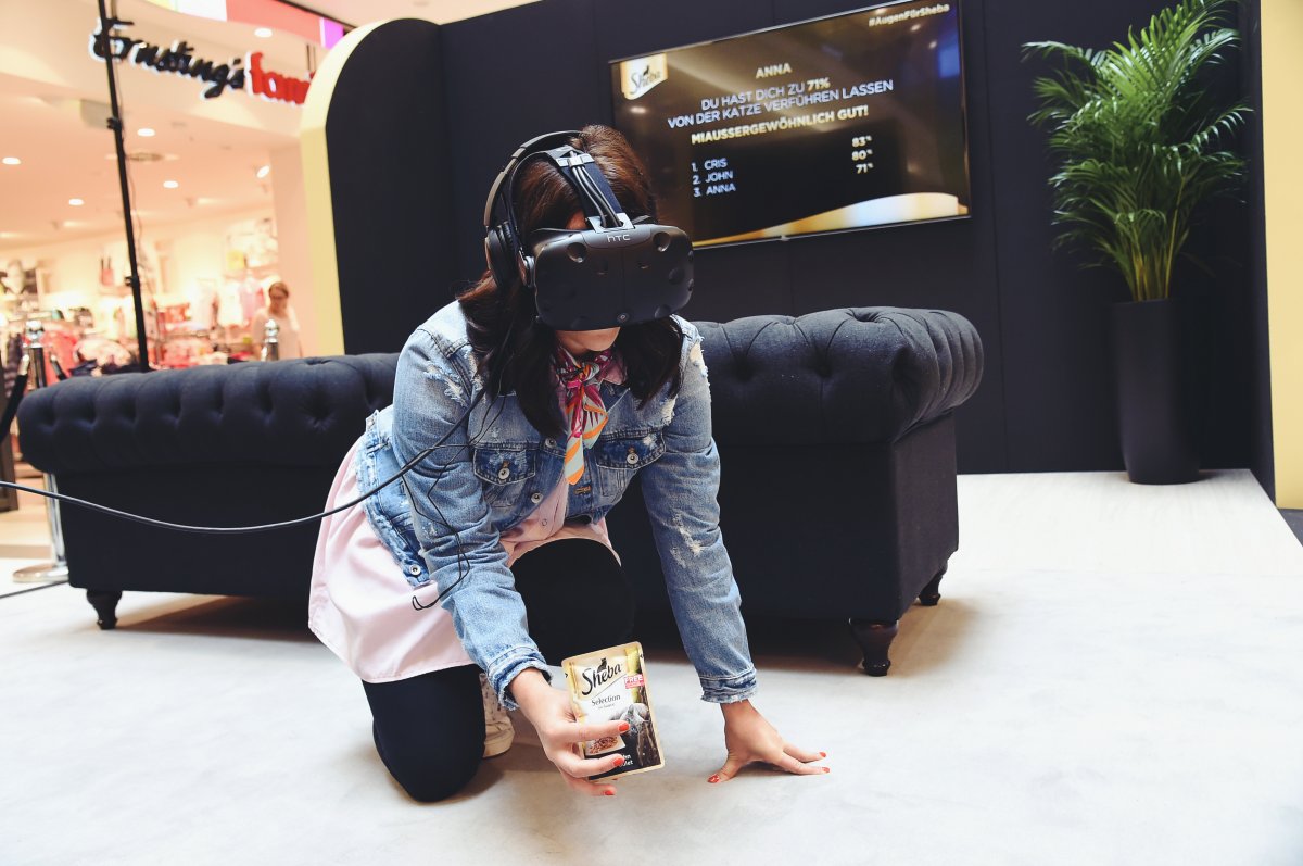 Mittels einer Virtual Reality Brille tauchte ich ab in die 360°-Welt der grauen Sheba Katze. Diese wartete schon sehnsüchtig drauf von mir gefüttert zu werden, natürlich standesgemäß mit einem leckeren Sheba Katzenfutter ihrer Wahl. Doch bevor es an die Fütterung der Katze ging, hatte ich alle Hände voll zu tun, denn der graue Stubentiger spielte mit mir in seiner virtuellen Welt verstecken. Das Ziel war es, die kleine graue Katze nicht aus den Augen zu verlieren – keine leichte Aufgabe, das kann ich euch sagen.