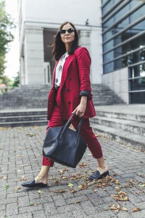 - Herbst Outfit mit rotem Hosenanzug und Just Female Tunika