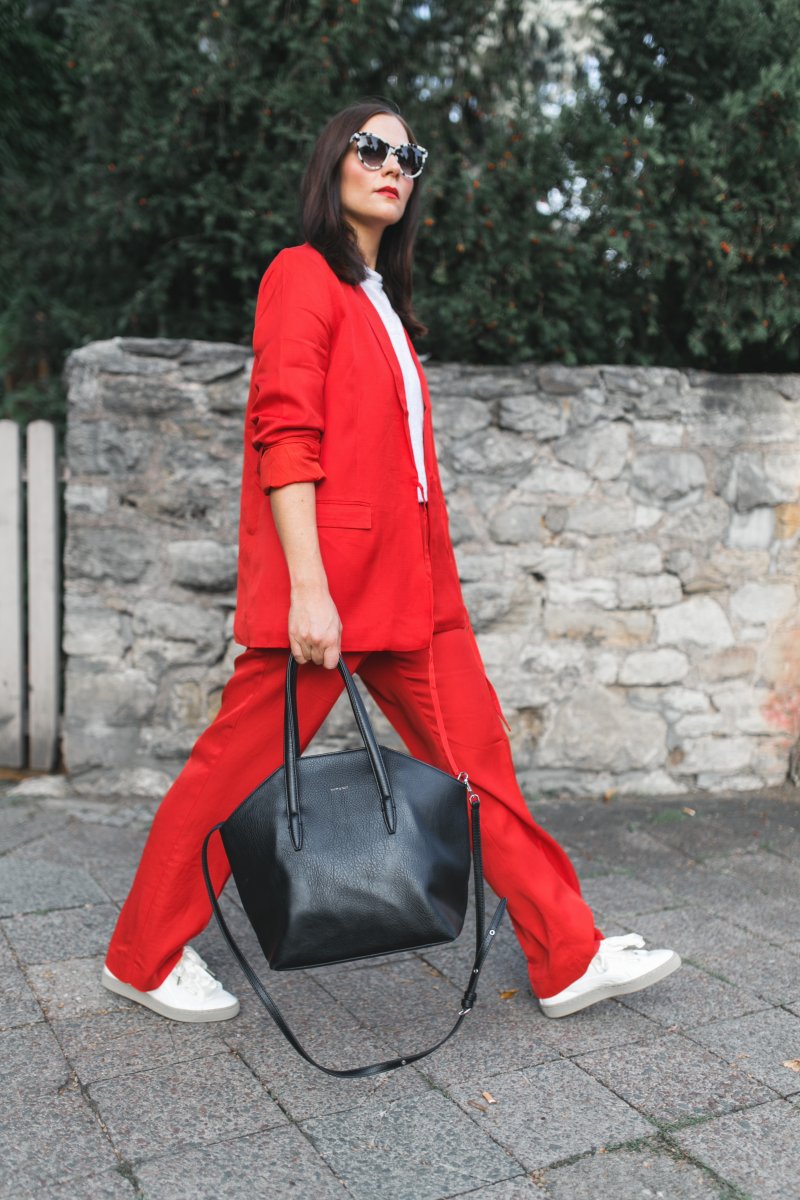 OMG der Look ist einfach unfassbar cool – der rote Anzug steht dir perfekt ♥ Und ich liebe die lässige Kombi mit Sneakern und weißem Shirt – genau so würde ich den Anzug auch stylen!! 🙂
