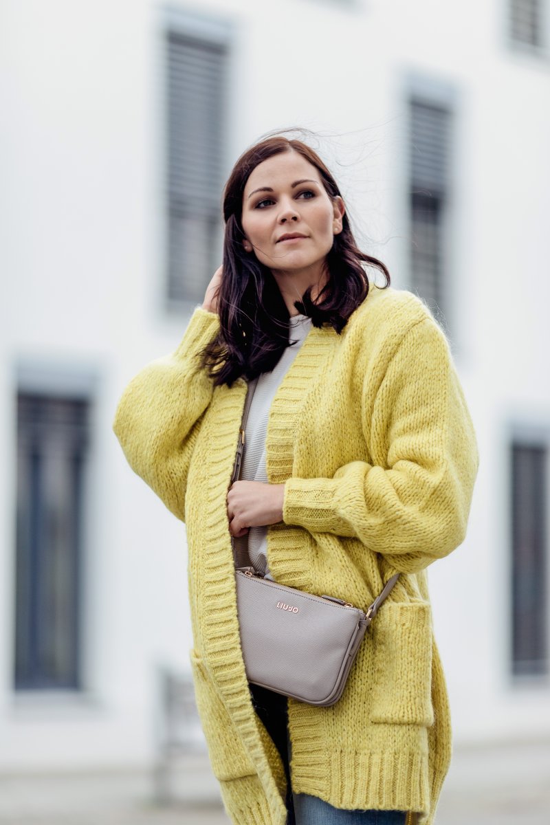 Ein Herbst ohne einen gemütlichen Cardigan ist nicht vorstellbar, zumindest für mich. Ich liebe diese warmen Strickjacken, in die man sich so wunderbar einkuscheln kann. Ganz neu in meinen Kleiderschrank ist dieses gelbe Modell gewandert, das auf jeden Fall für Aufmerksamkeit sorgt. Die knallige Farbe bringt den Look zum Strahlen und verleiht auch an grauen Tagen gute Laune. Da kann das restliche Outfit auch einmal ganz einfach und schlicht ausfallen.
