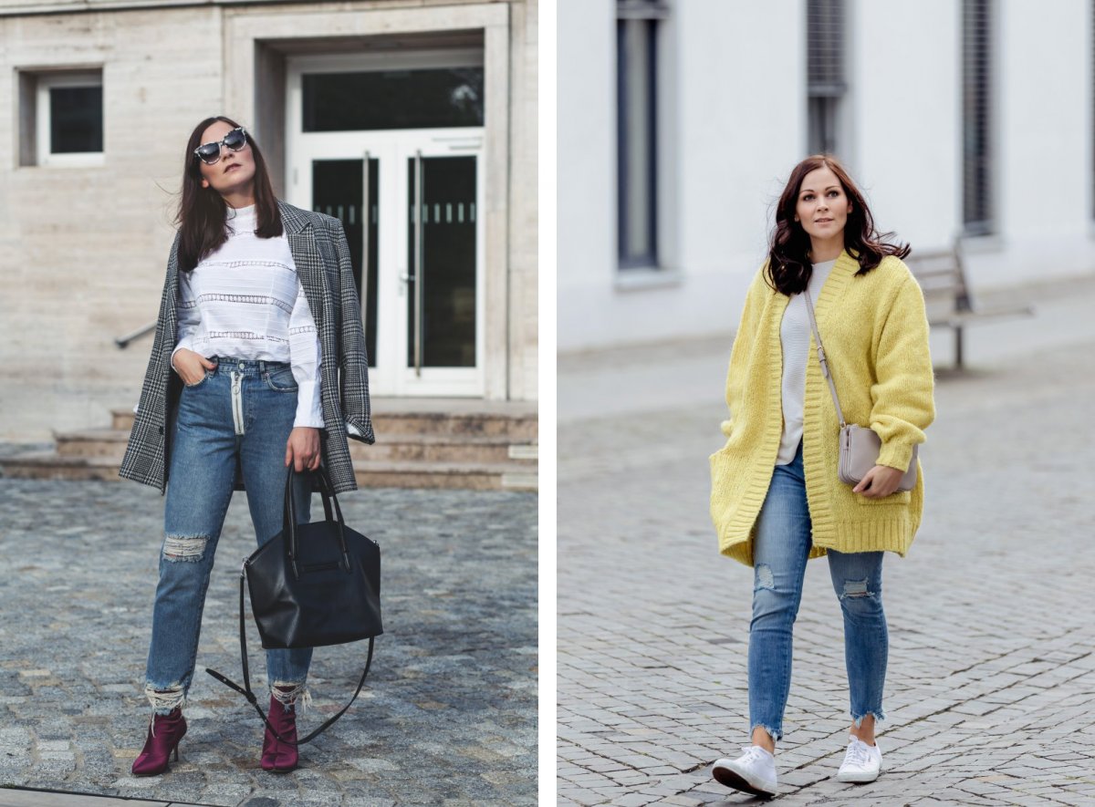- Herbst Outfit mit gelbem Strick-Cardigan und Superga Sneakers