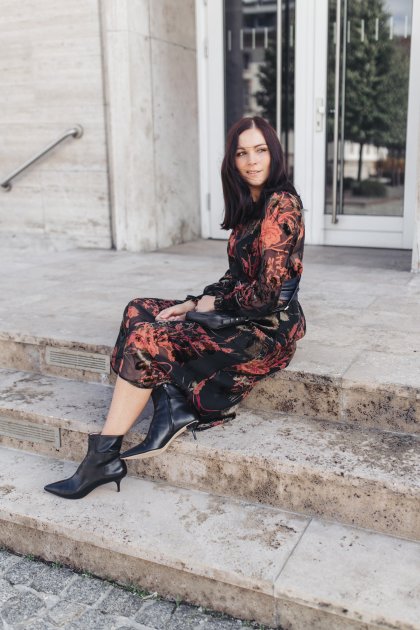 - Herbst Outfit mit Midi-Kleid und Fossil Piper Tasche